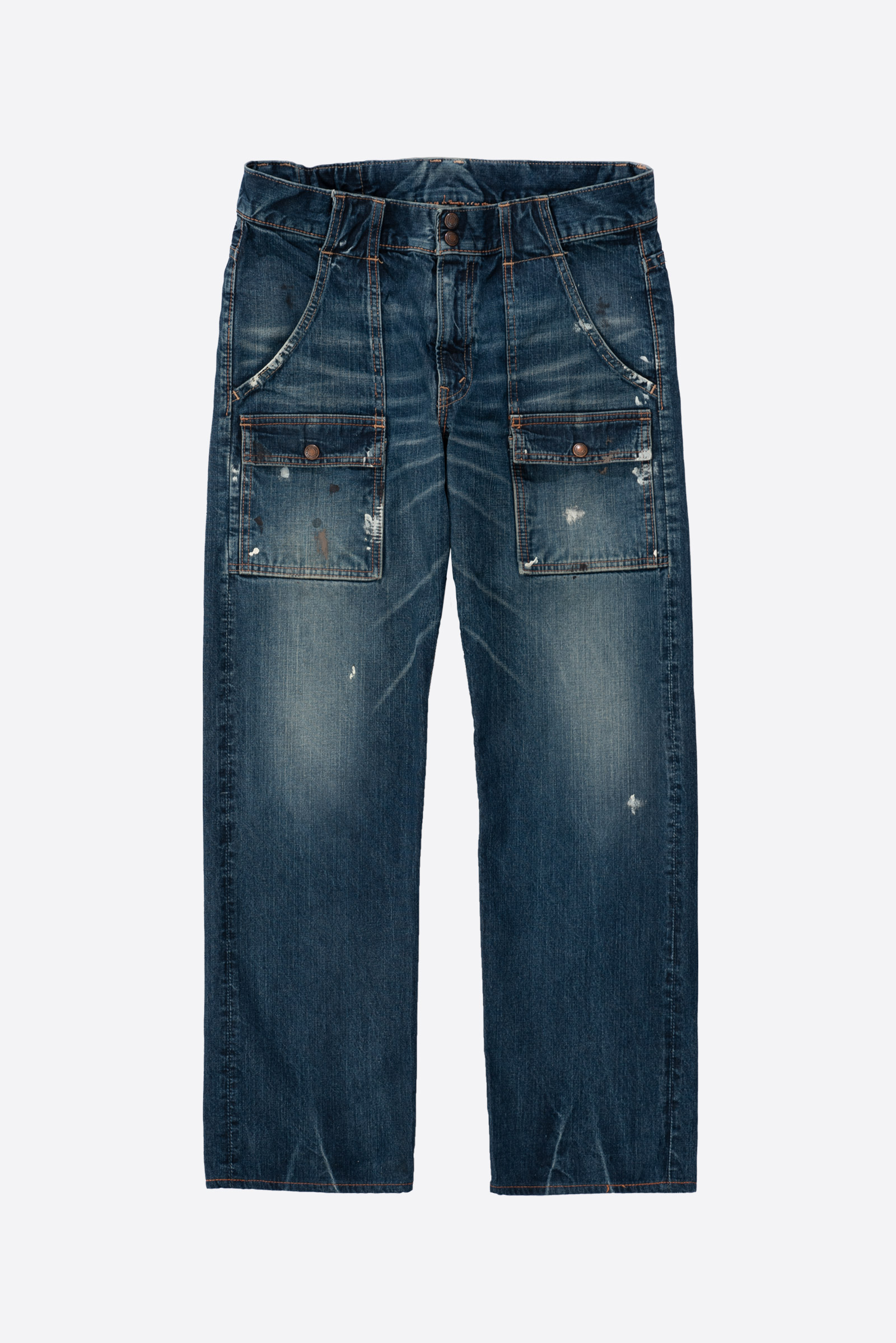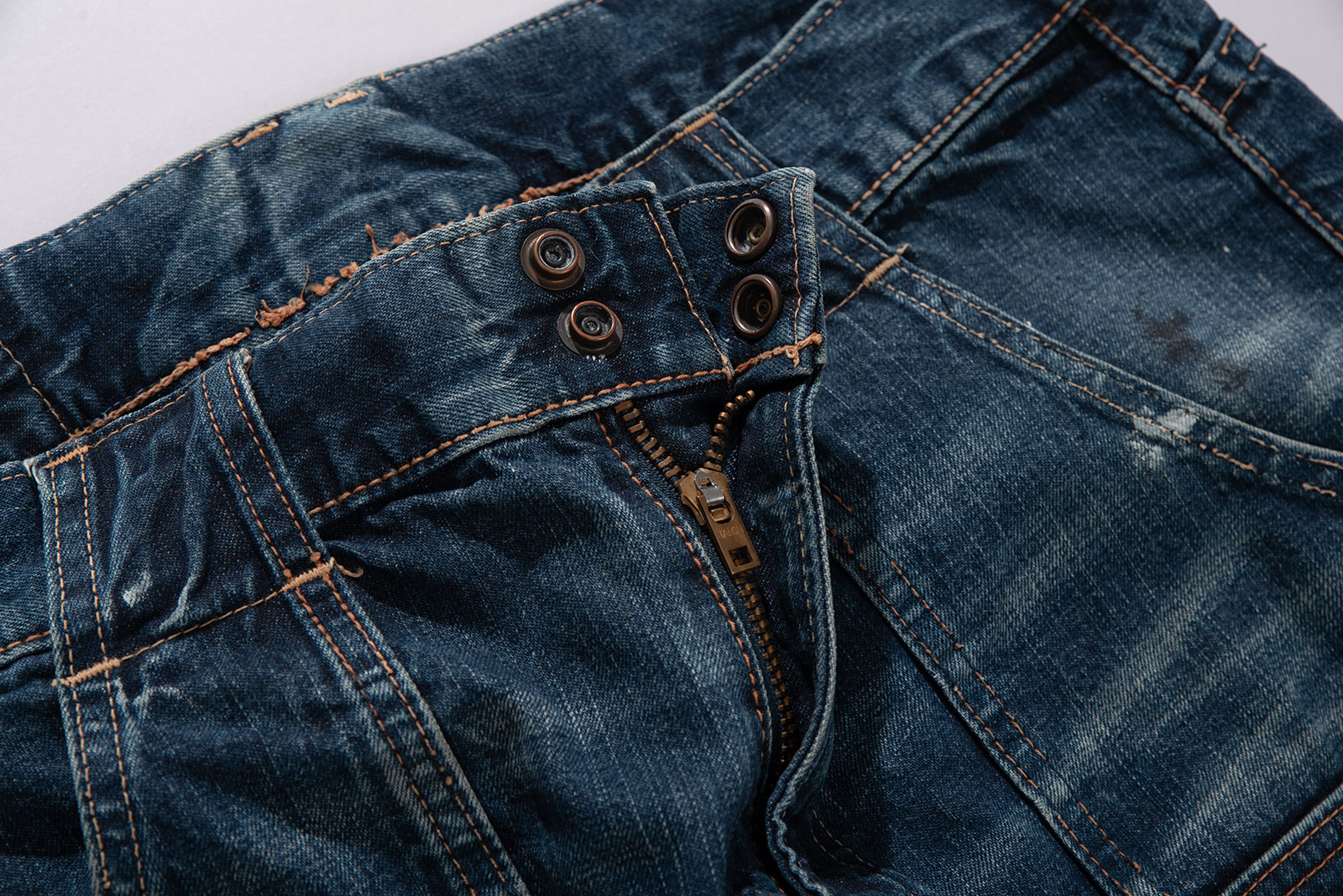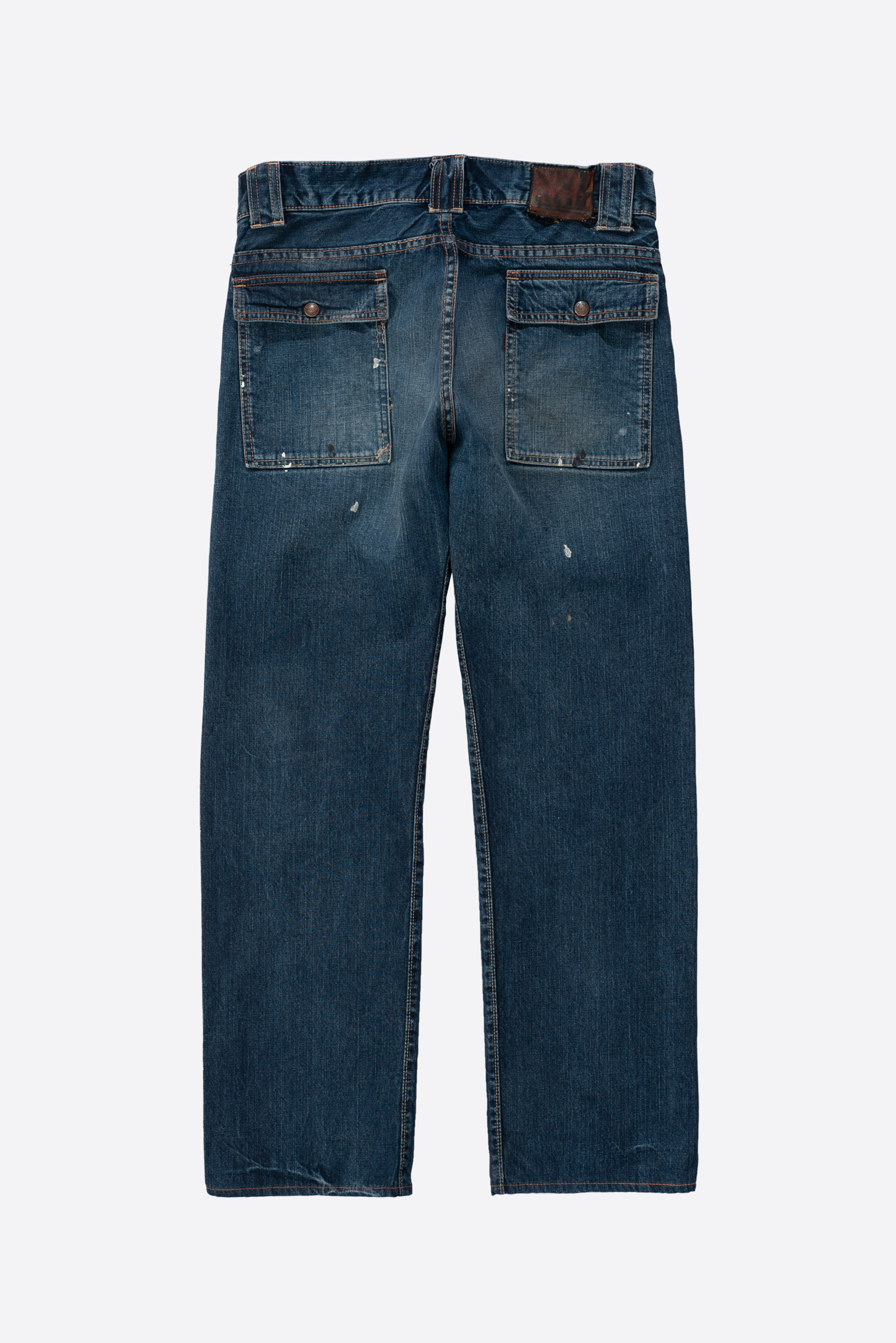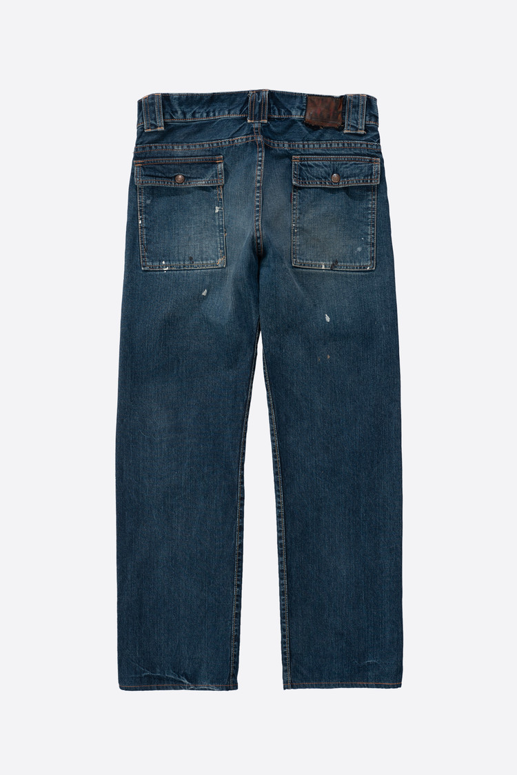 오사카 파이브의 주축, 풀카운트의 구형 부시 팬츠입니다. 현행 1246 모델의 전신이 되는 제품입니다. 타론 지퍼와 ykknewmax 버튼 부자재가 사용되었습니다. 1246은 아웃심이 셀비지로 마감되어 있습니다만, 해당 제품은 오버록으로 마감되어 있습니다. 별 다른 수선 내역없이 전반적으로 사용감이 많은 제품입니다. 전 사용자에 의해 커스텀이 된건지 페인트 스팟이 있고 허리 안쪽 면 체인 스티치가 풀린 곳도 있습니다. 무엇보다 가랑이 쪽 찢어짐과 백포켓 측면 스티치가 풀린 부분이 가장 도드라지는 하자입니다. 받아서 좀 입으시다가 수선해도 될 것 같아요. 실측 비교 후 구매부탁드립니다.