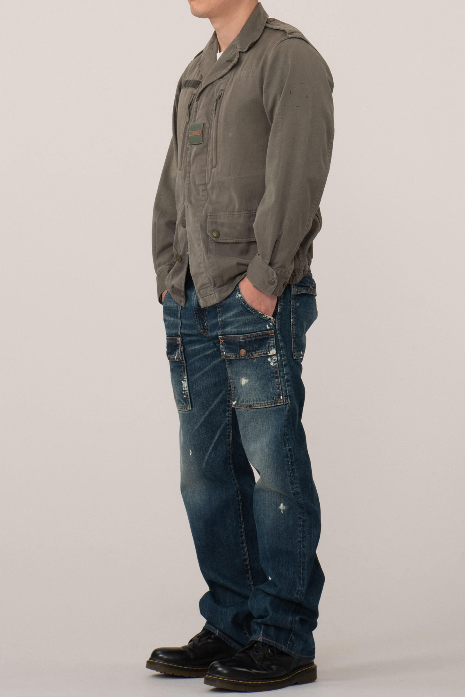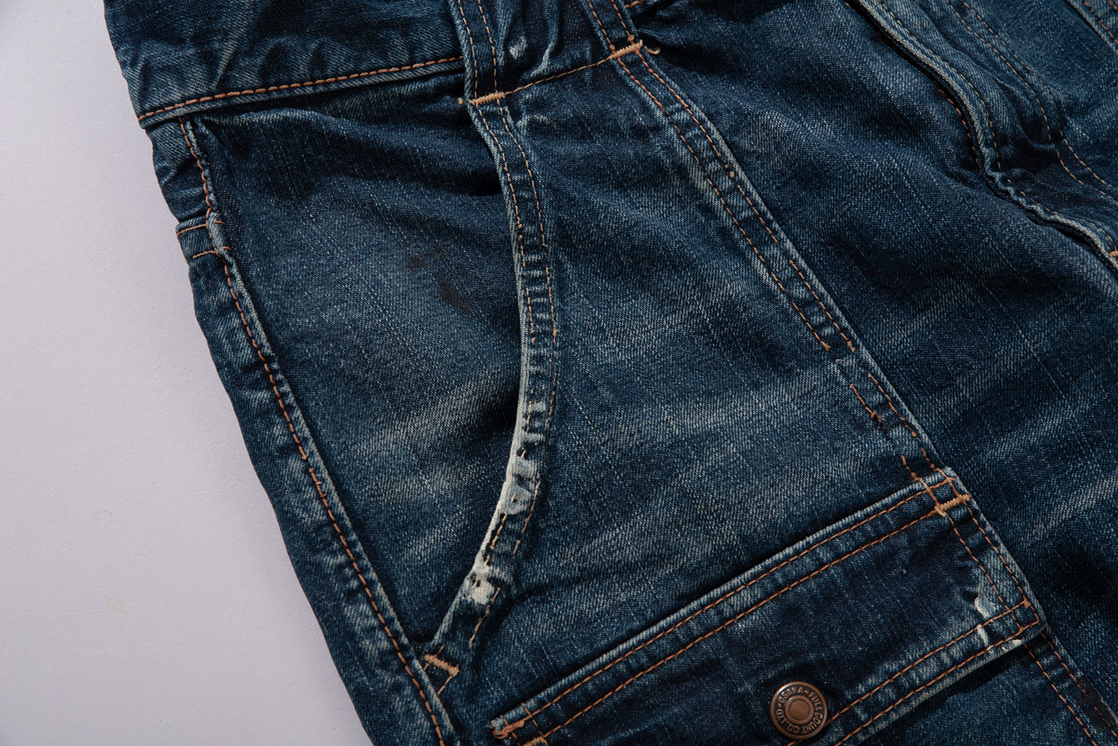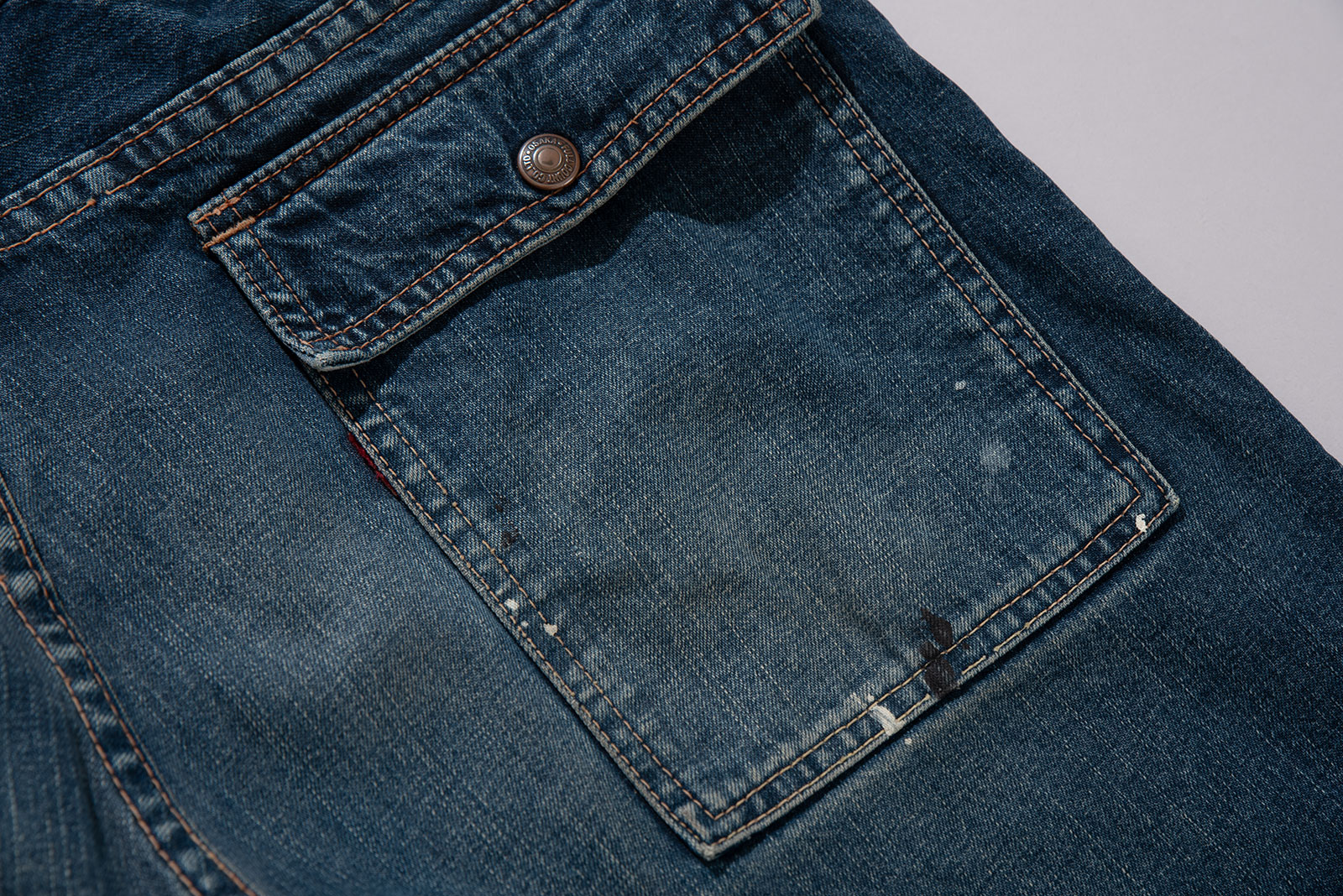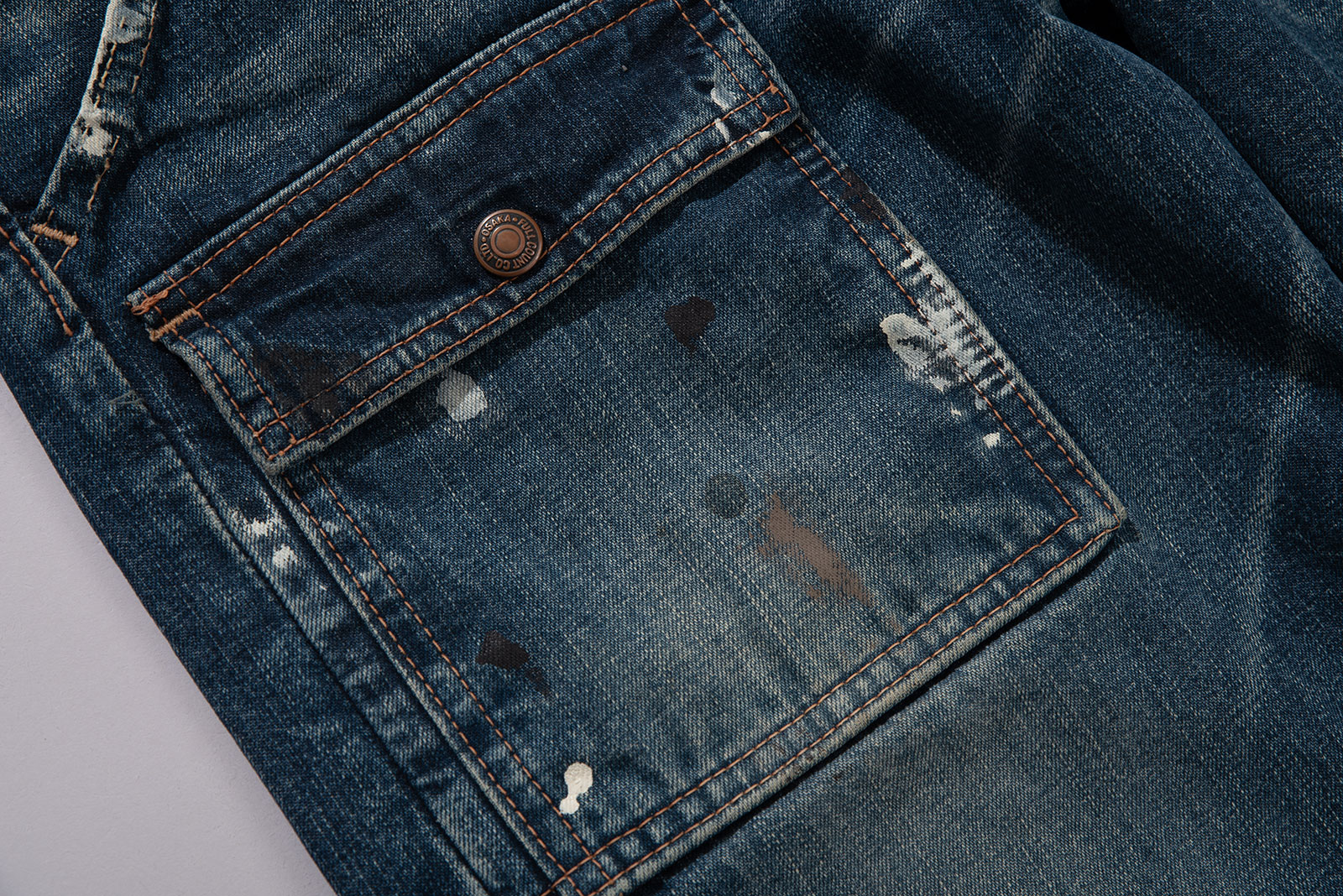 오사카 파이브의 주축, 풀카운트의 구형 부시 팬츠입니다. 현행 1246 모델의 전신이 되는 제품입니다. 타론 지퍼와 ykknewmax 버튼 부자재가 사용되었습니다. 1246은 아웃심이 셀비지로 마감되어 있습니다만, 해당 제품은 오버록으로 마감되어 있습니다. 별 다른 수선 내역없이 전반적으로 사용감이 많은 제품입니다. 전 사용자에 의해 커스텀이 된건지 페인트 스팟이 있고 허리 안쪽 면 체인 스티치가 풀린 곳도 있습니다. 무엇보다 가랑이 쪽 찢어짐과 백포켓 측면 스티치가 풀린 부분이 가장 도드라지는 하자입니다. 받아서 좀 입으시다가 수선해도 될 것 같아요. 실측 비교 후 구매부탁드립니다.