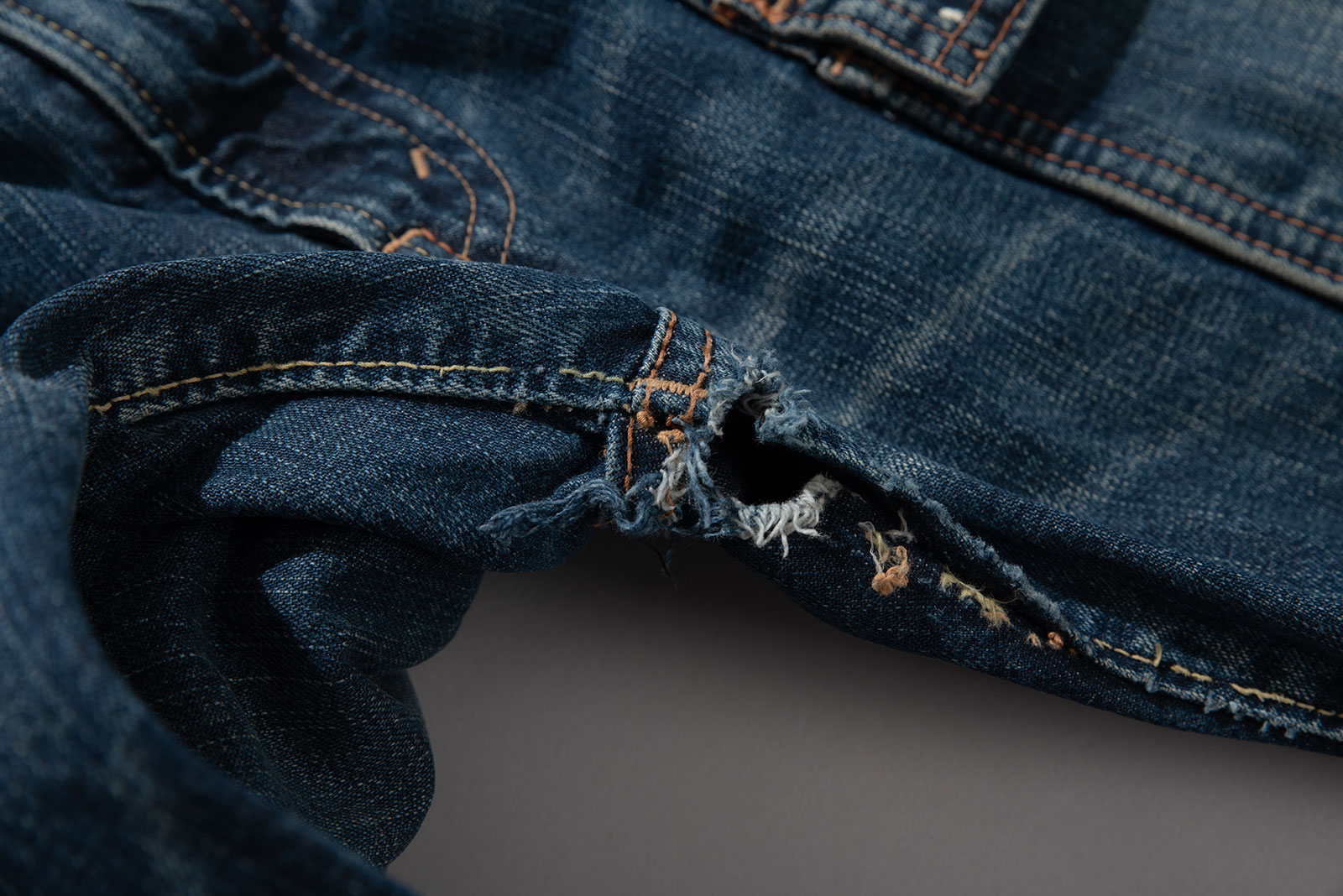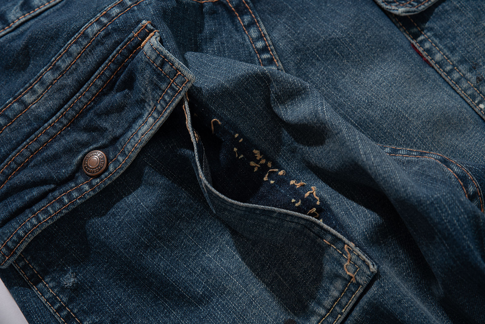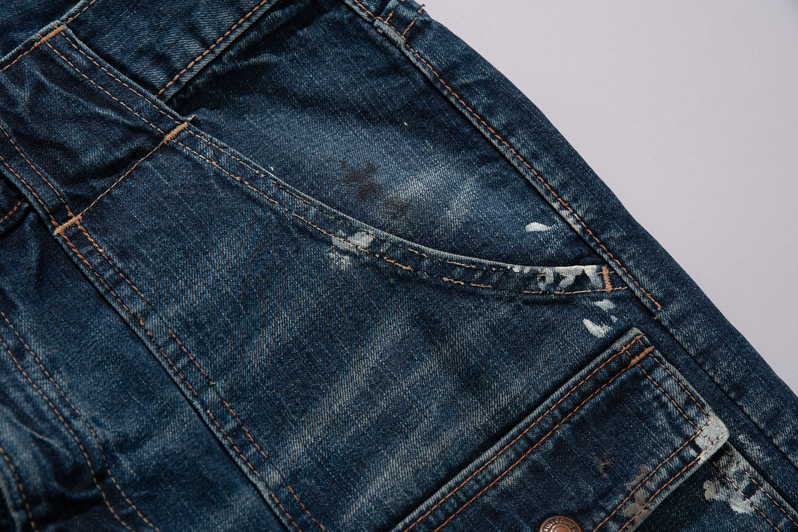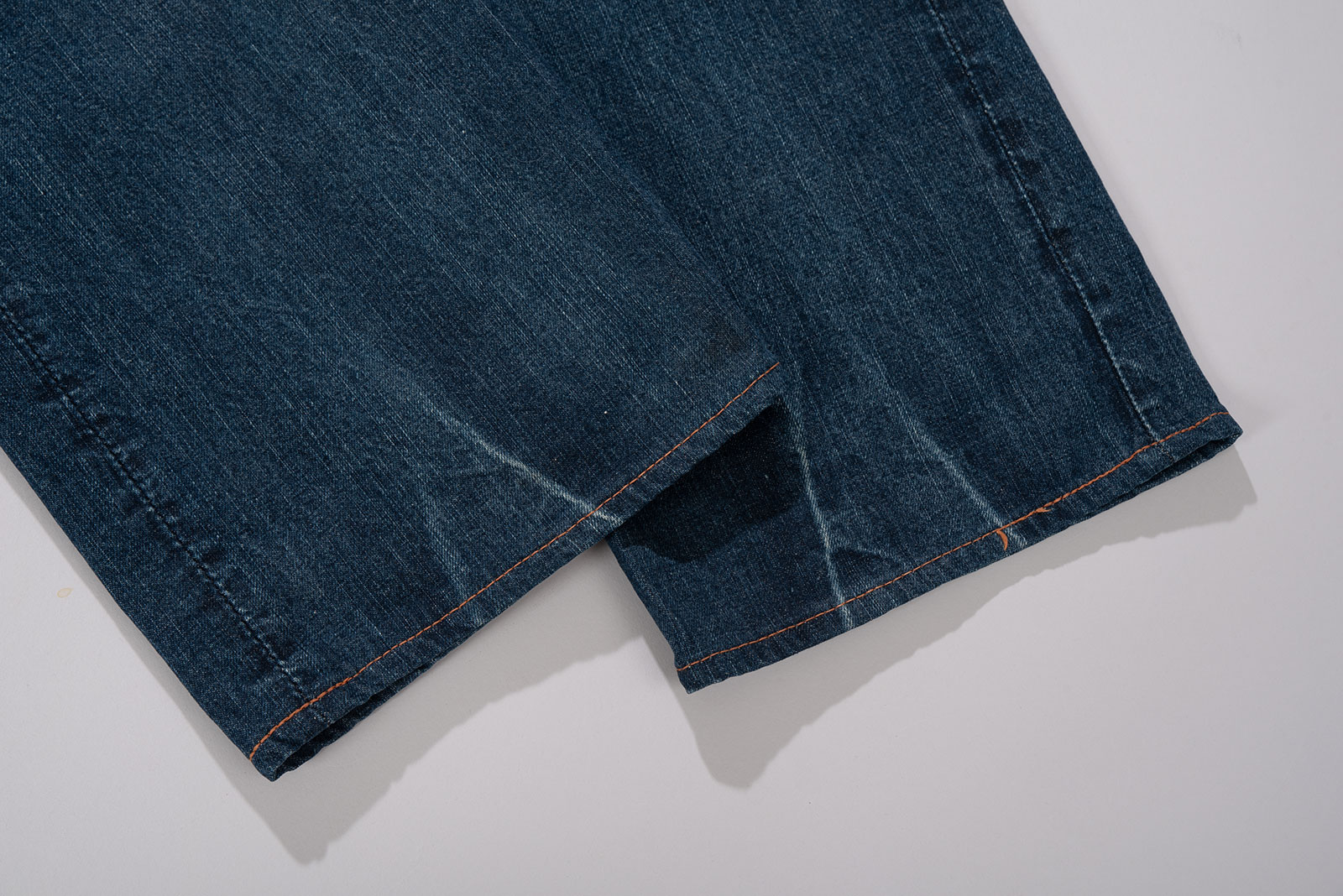 오사카 파이브의 주축, 풀카운트의 구형 부시 팬츠입니다. 현행 1246 모델의 전신이 되는 제품입니다. 타론 지퍼와 ykknewmax 버튼 부자재가 사용되었습니다. 1246은 아웃심이 셀비지로 마감되어 있습니다만, 해당 제품은 오버록으로 마감되어 있습니다. 별 다른 수선 내역없이 전반적으로 사용감이 많은 제품입니다. 전 사용자에 의해 커스텀이 된건지 페인트 스팟이 있고 허리 안쪽 면 체인 스티치가 풀린 곳도 있습니다. 무엇보다 가랑이 쪽 찢어짐과 백포켓 측면 스티치가 풀린 부분이 가장 도드라지는 하자입니다. 받아서 좀 입으시다가 수선해도 될 것 같아요. 실측 비교 후 구매부탁드립니다.