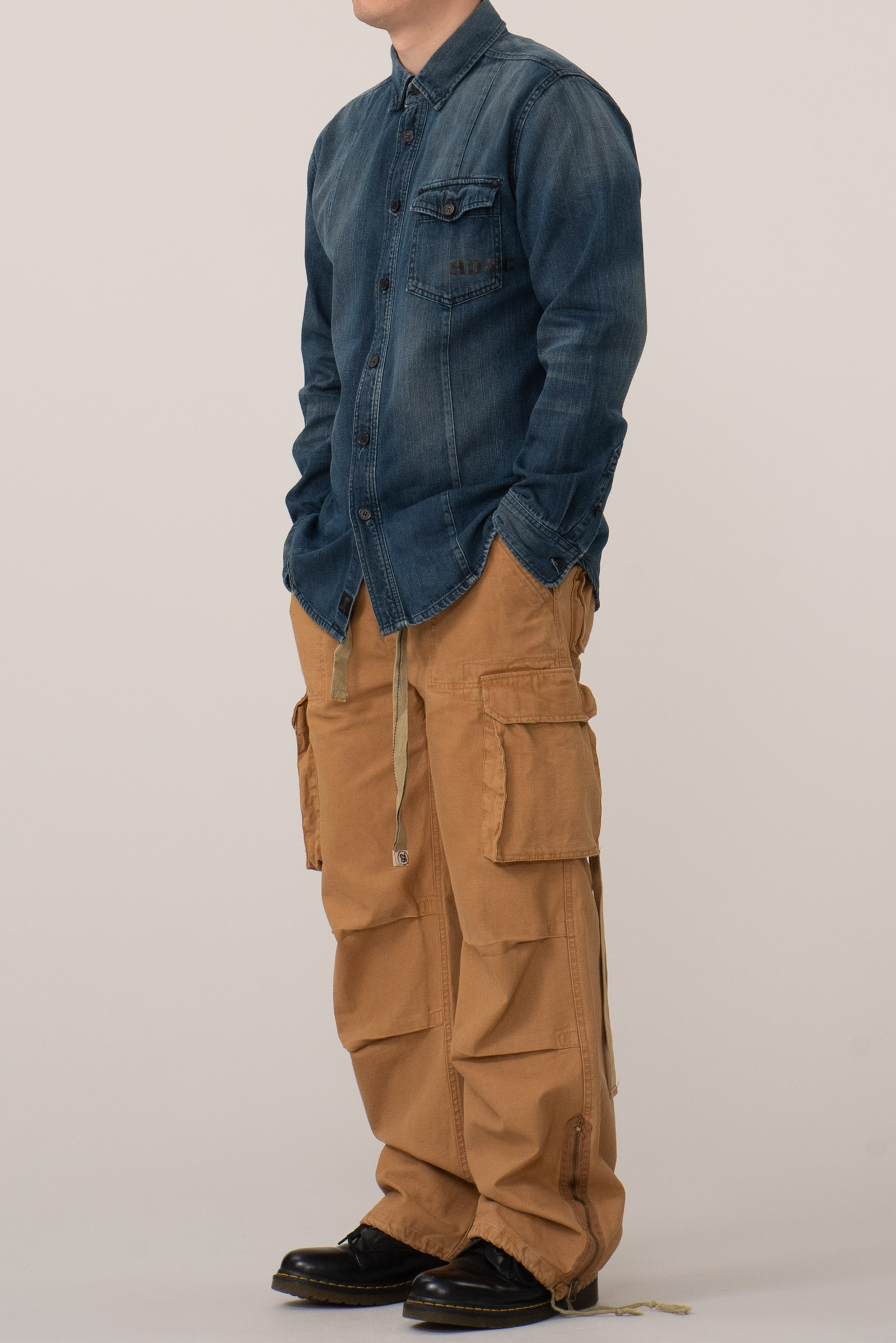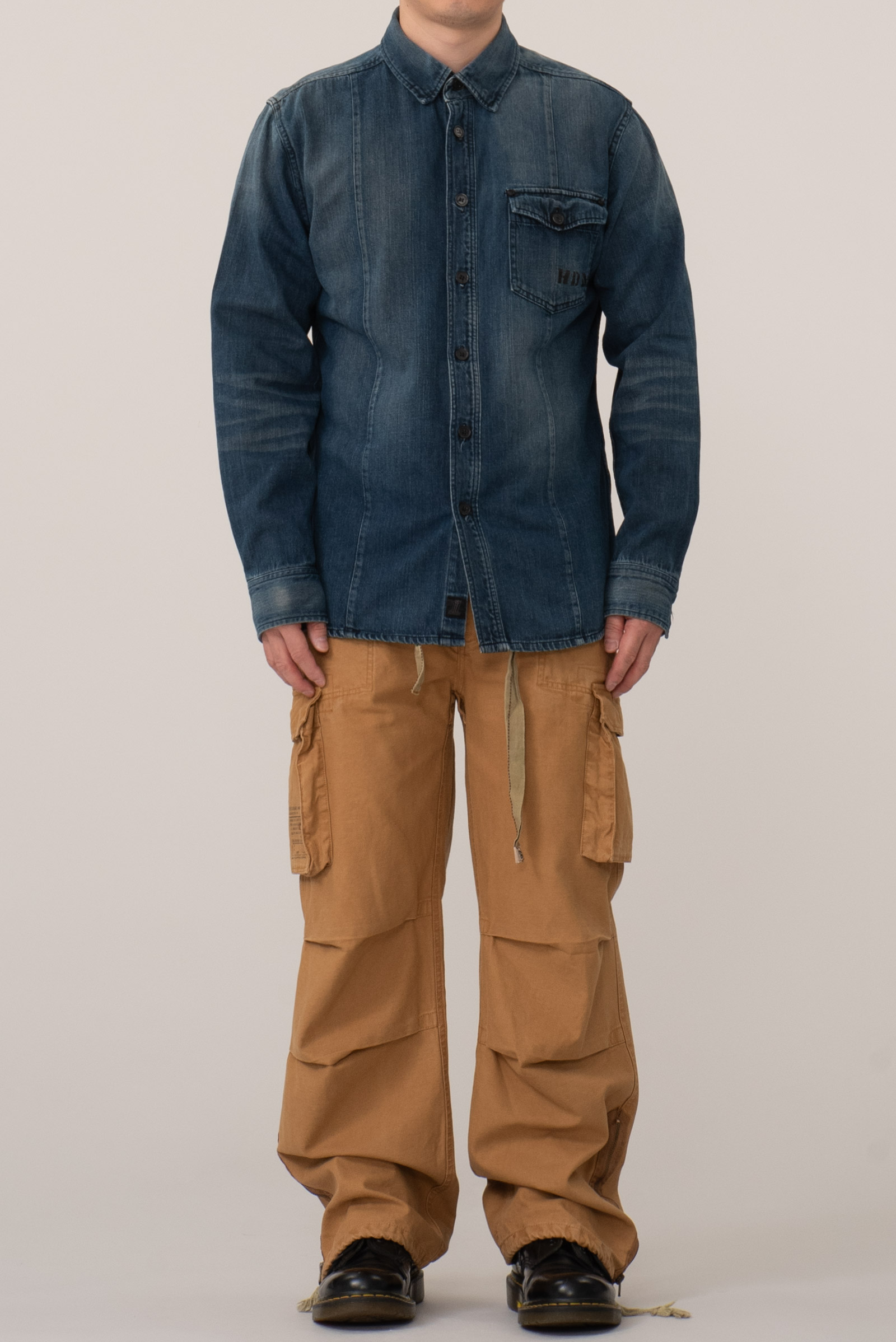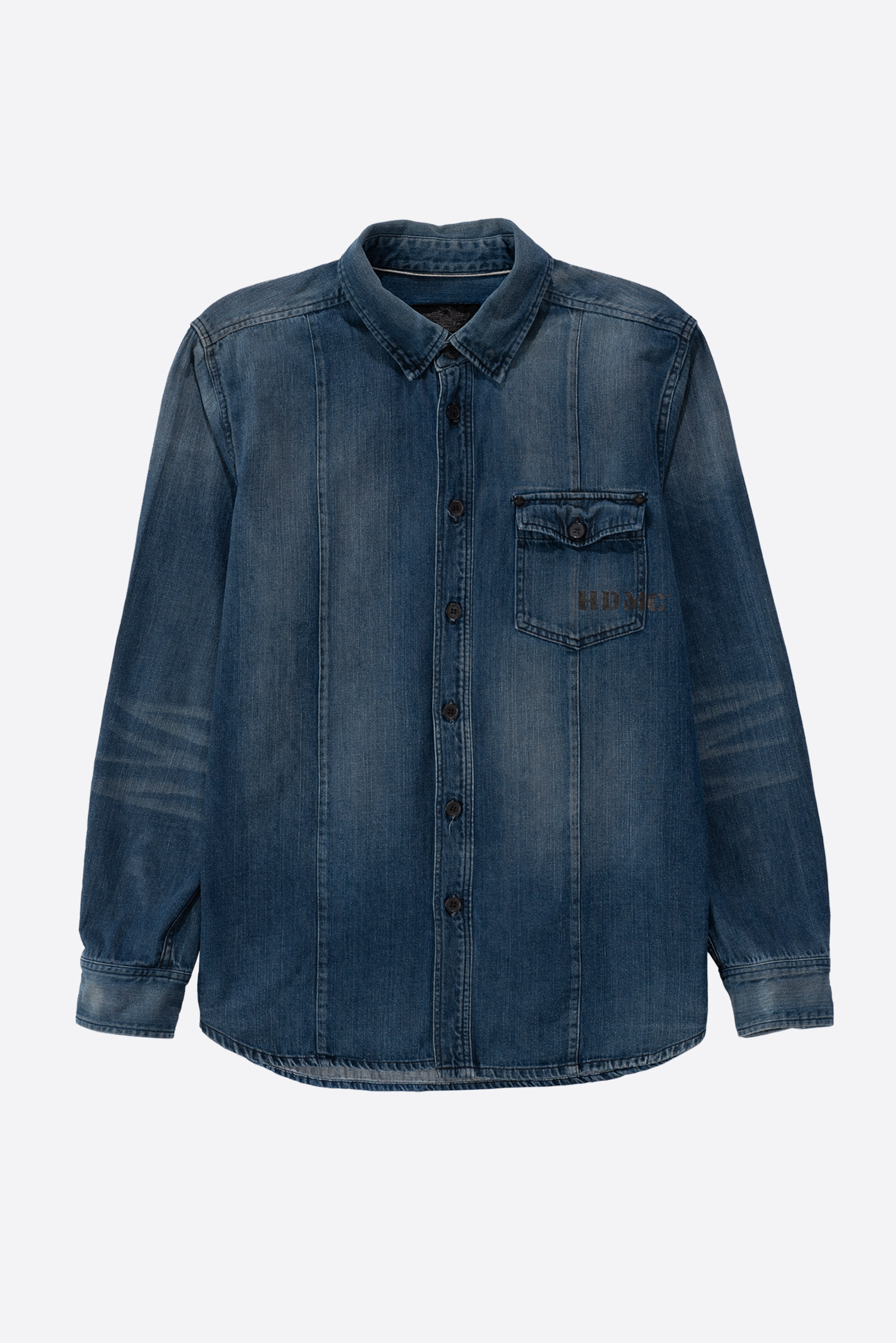 크롬하츠와 잘 어울리는 브랜드, 할리 데이비슨의 국내 정발판 데님 셔츠입니다. 정면 양쪽 절개 패턴으로 하여금 조금 더 날씬하게 보이도록 연출 된 제품입니다. 자잘한 오염이 있으나 제품 컨디션은 좋습니다. 몸에 꼭 맞게 입는다치면 108-110 정도 될 것 같은데요. 몸에 잘 맞게 입으실 분들은 실측 꼭 비교 후 구매부탁드립니다.