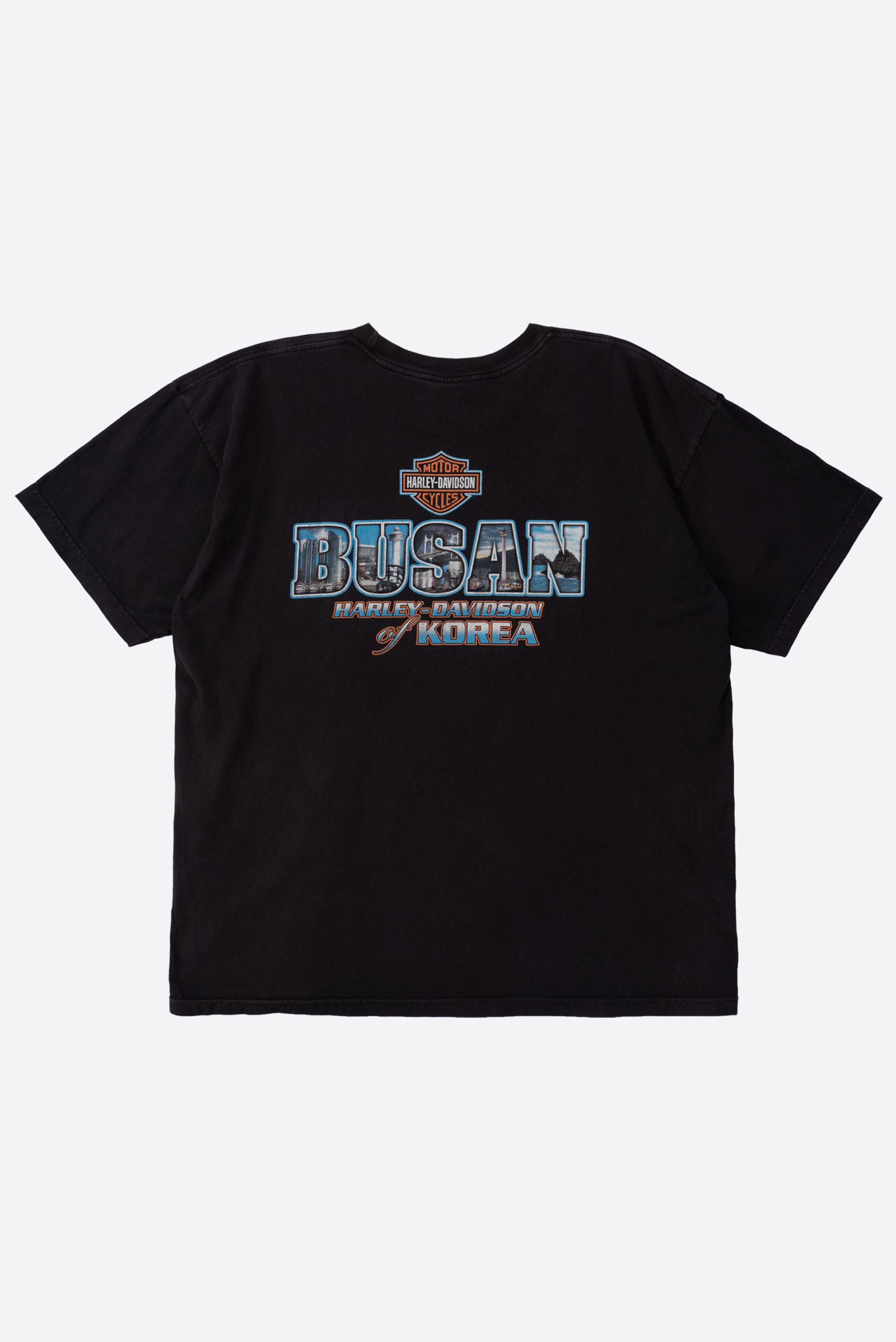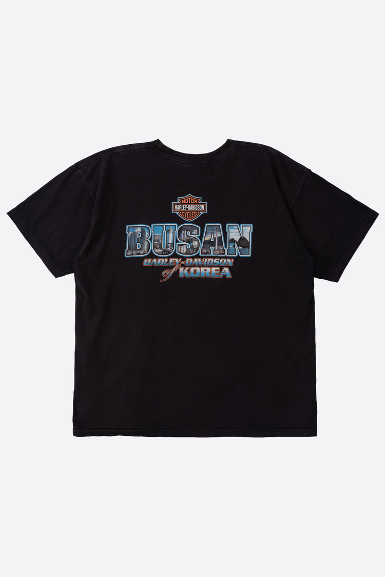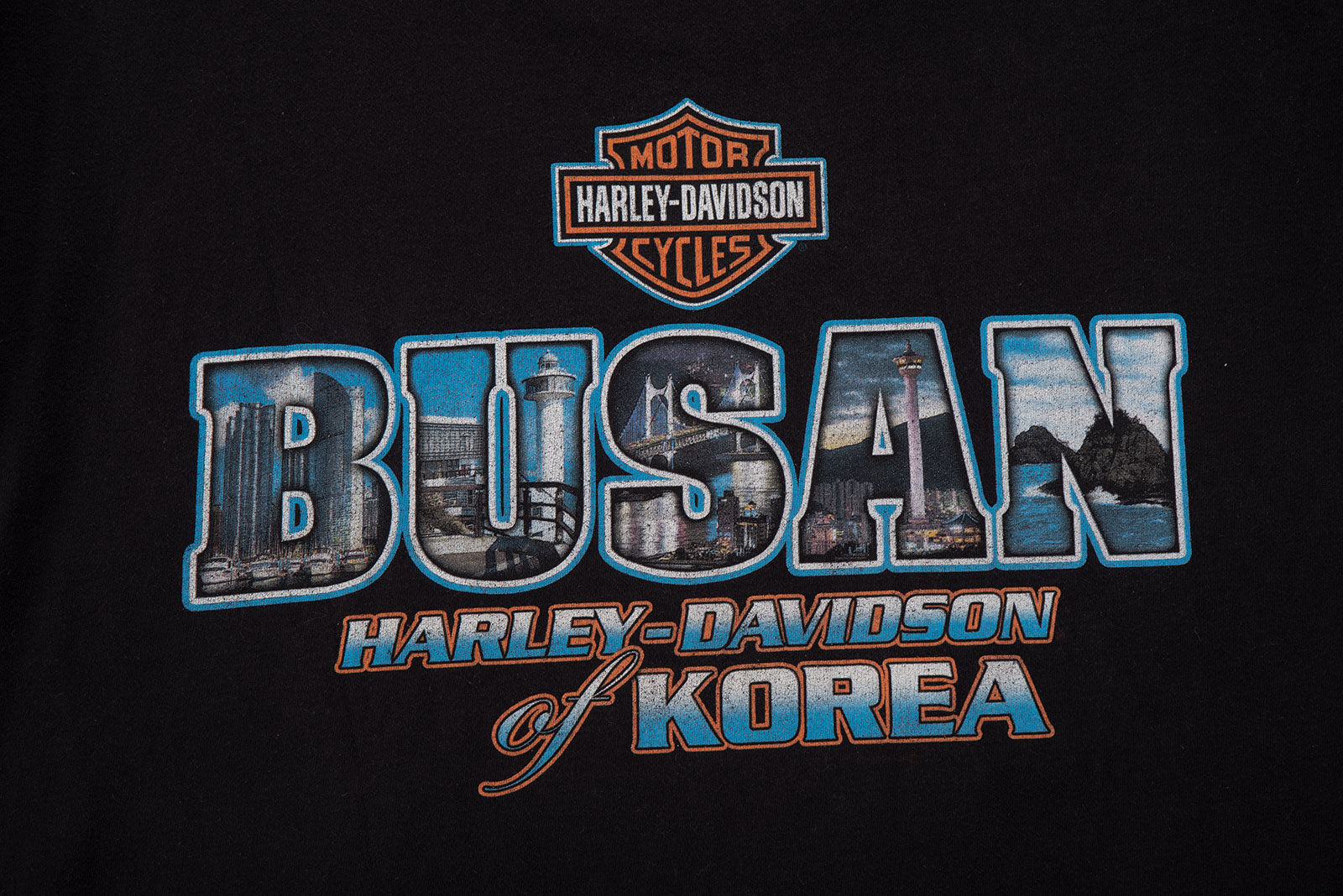 아메리칸 크루저 컬쳐의 아이콘, 할리 데이비슨의 부산 에디션 반팔 티셔츠입니다. 미국에서 생산 된 오리지널 피스이며 3xl 사이즈로 입고 되었습니다. 사진보다 실제로는 사용감이 훨씬 더 느껴집니다. 왼쪽 겨드랑이가 찢어졌는데, 간단하게 수선해서 보내겠습니다. 티는 나요. 사용감 많으니 참고하시고 구매부탁드려요.