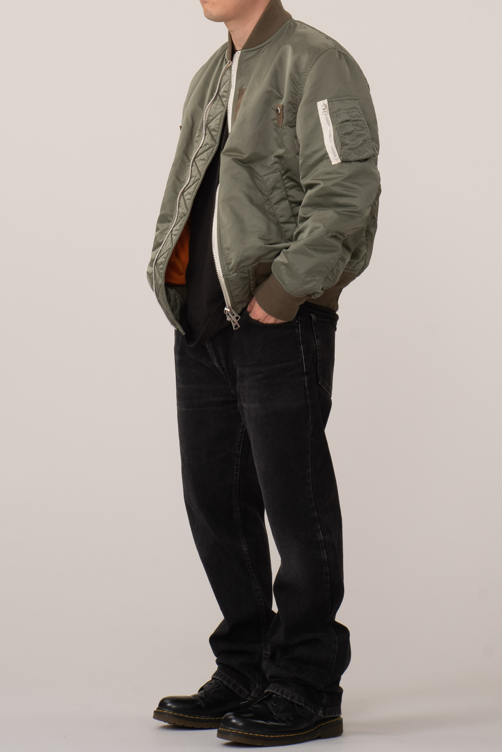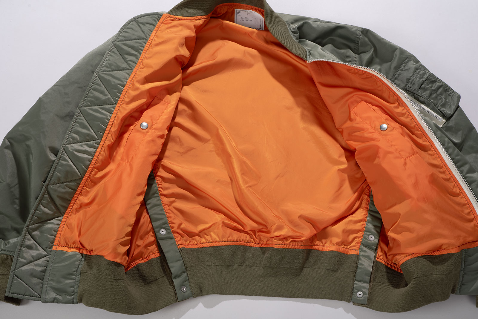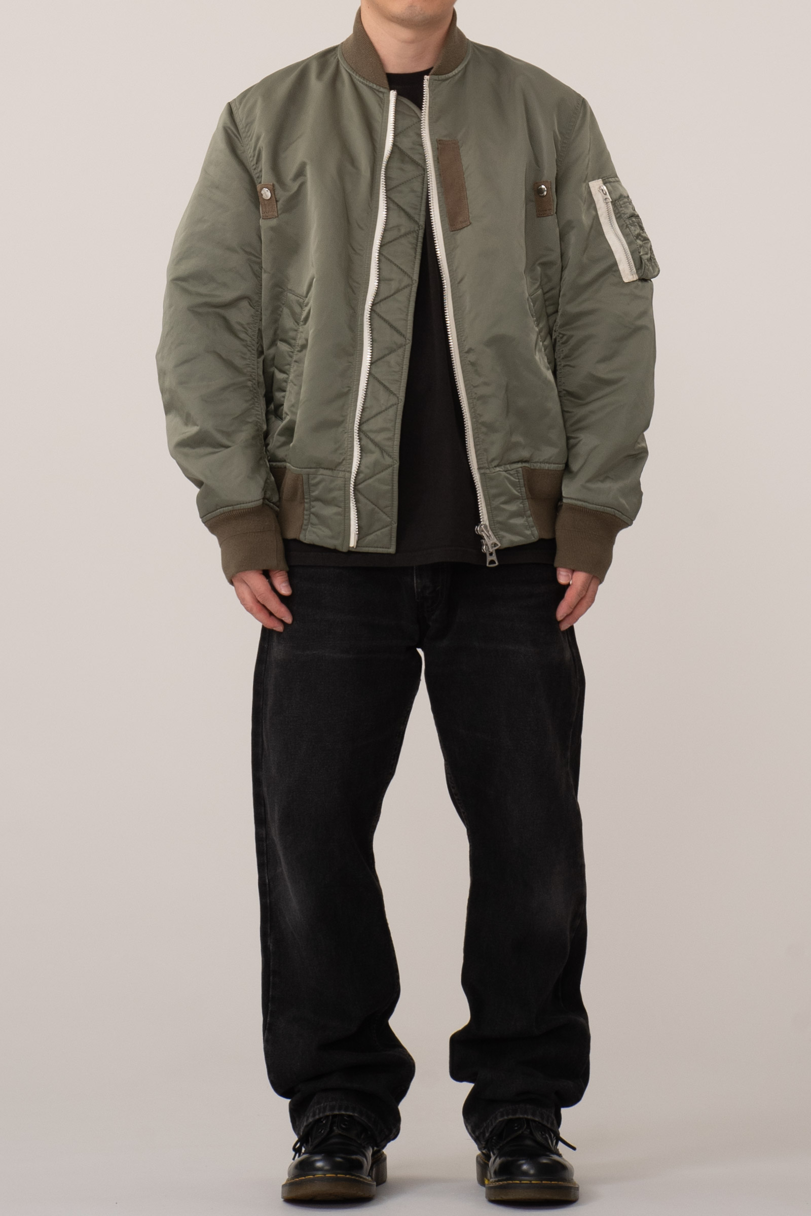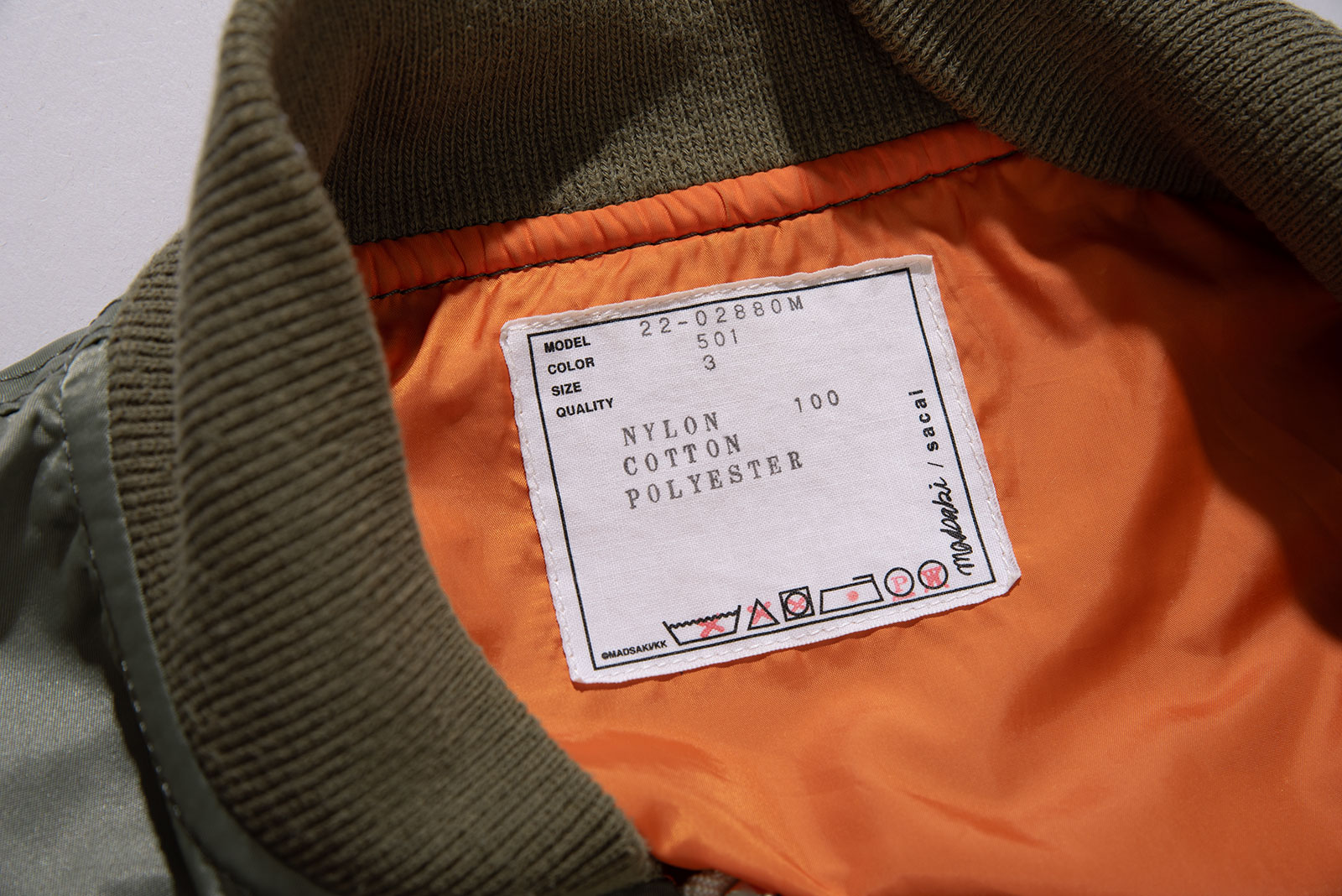 사용감이 거의 없는 피스입니다. 왼쪽 팔 입구 부분에 어딘가 살짝 눌린 듯 한 흔적이 있는데, 이 외엔 아무튼 깨끗해요. 맥시멈에 가까운 디테일로 유명한 사카이답게, 기존 MA-1 디자인 위에 디테일이 조금 씩 더 얹어져 있습니다. 오리지널에 비해 총장이 약간 더 긴편이라 부담없이 입기 좋은 재킷입니다. 약 150 만원 후반대에 발매 되었습니다. 컨디션에 민감한 제품이라 교환 환불이 불가하니 신중한 구매 부탁드려요.