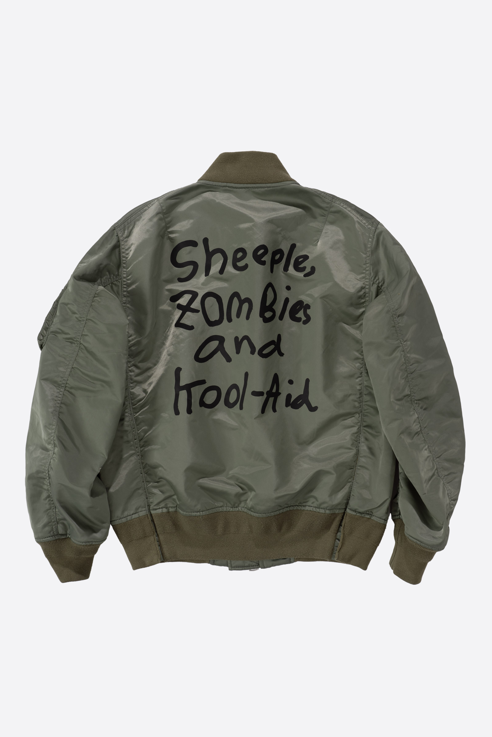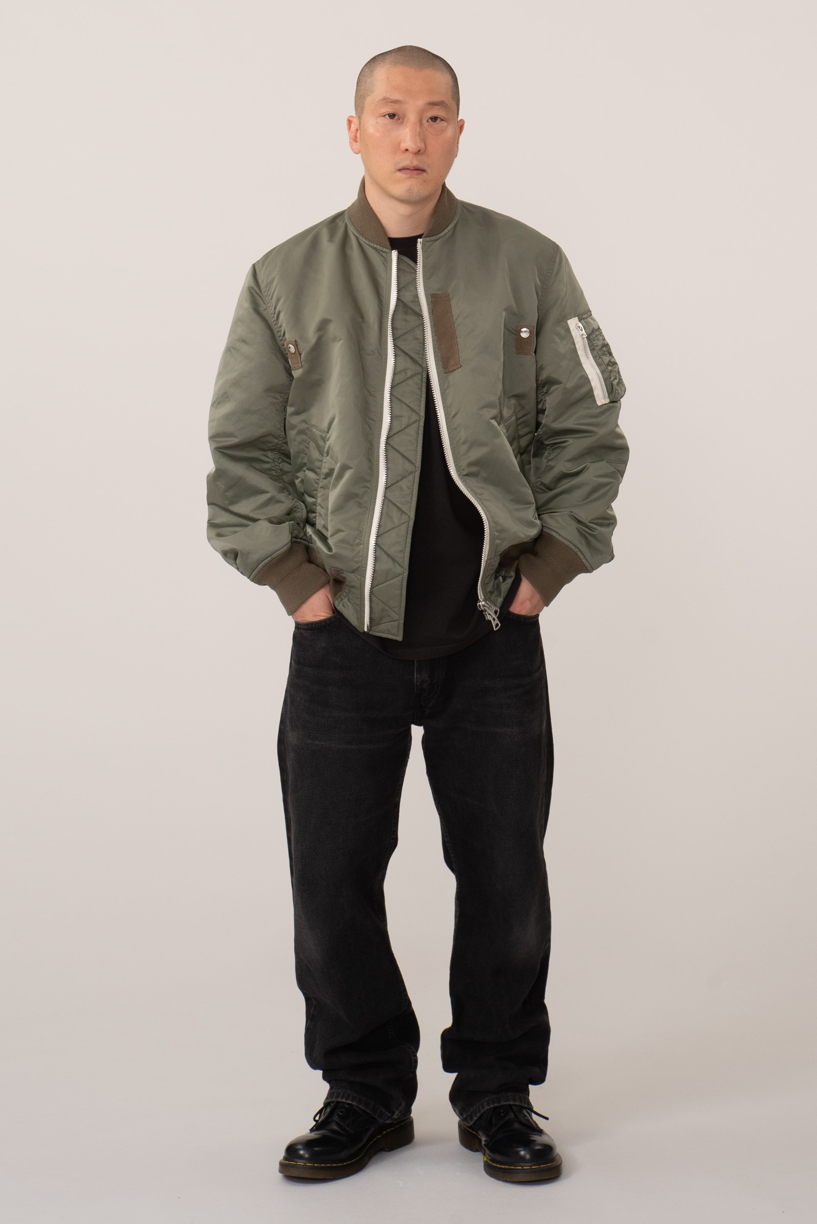 사카이 x 매드사키 콜라보 MA-1 피스입니다. 아름다운 선보단 삐뚤어지거나 지저분한 선을 좋아한다는 매드사키는 일본인 아티스트입니다. 미국 뉴욕으로 어린 나이에 이민을 가 일본인도 아니고, 미국인도 아닌 자신의 삶 속에서 정체성에 대한 고민을 늘 마주했는데, 그런 고민과 이중 문화의 요소가 자신도 모르게 작품에 녹아 든 것 같다고 인터뷰했었습니다. 이민 후 매번 집을 나설 때 동네 형과 아저씨들이 6살 밖에 안 된 자신에게 돌을 던지며 '꺼져 진주만' 과 같은 욕설을 늘 들었다고 하네요. 뉴욕에서 퀵 배달 할 땐 늘 들어서 이제 욕설이 자신의 인생이 된 것 같다고..(ㅠ)