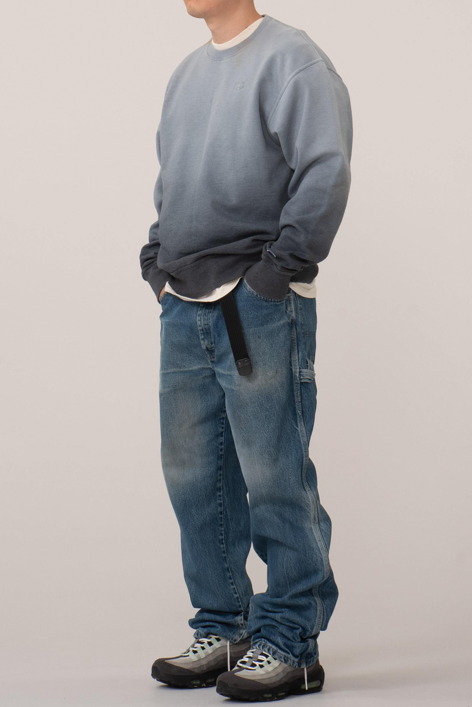 그라데이션 색감이 독특하죠? ㅎㅎ 목 쪽에 오염이 있긴한데, 좀 빈티지한 맛으로 입으면 좋을 챔피온 맨투맨입니다. 필링이 좀 생겼습니다만, 전반적인 컨디션은 무난한 수준입니다.