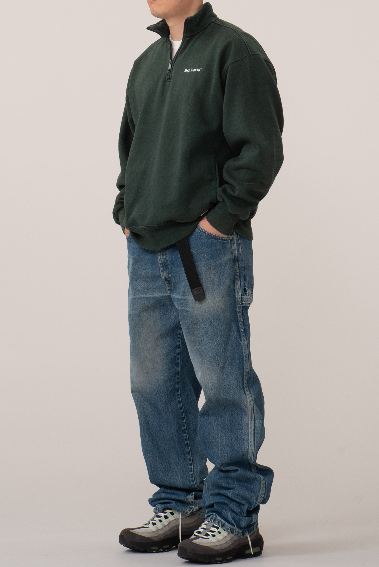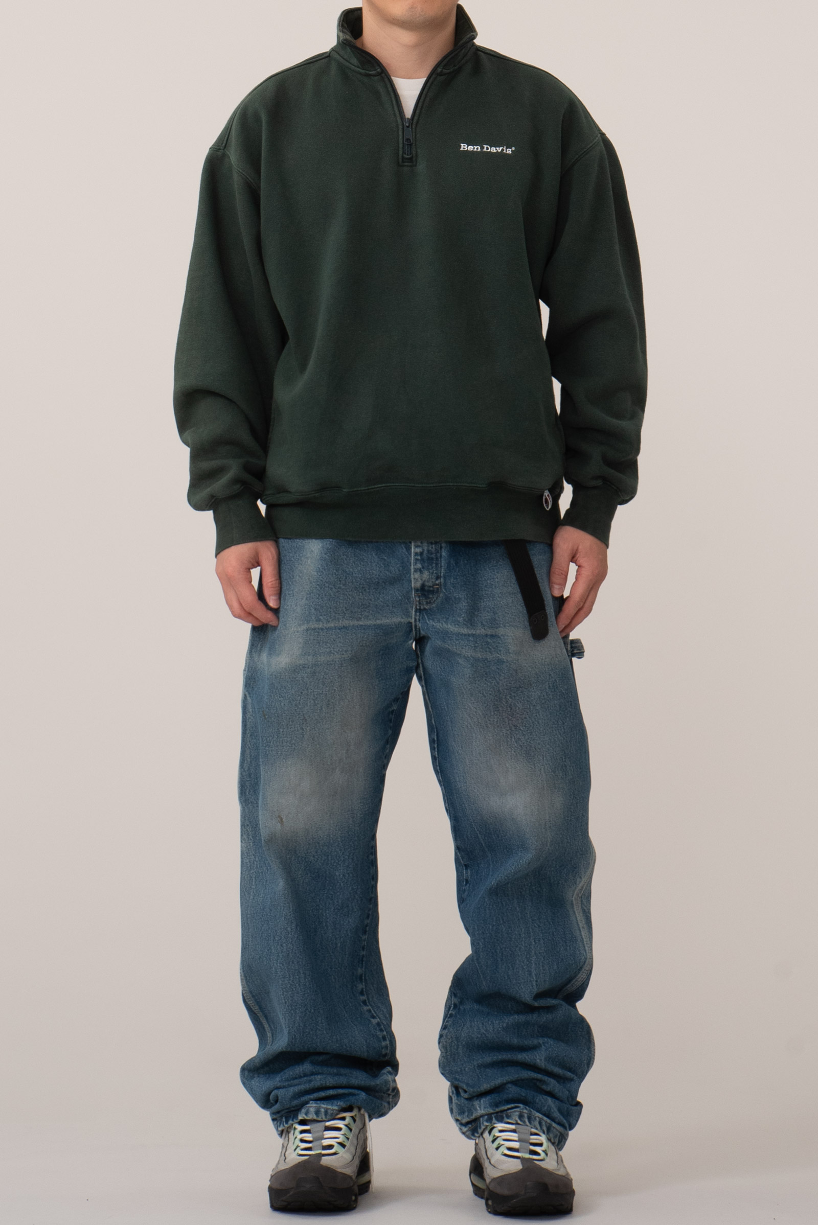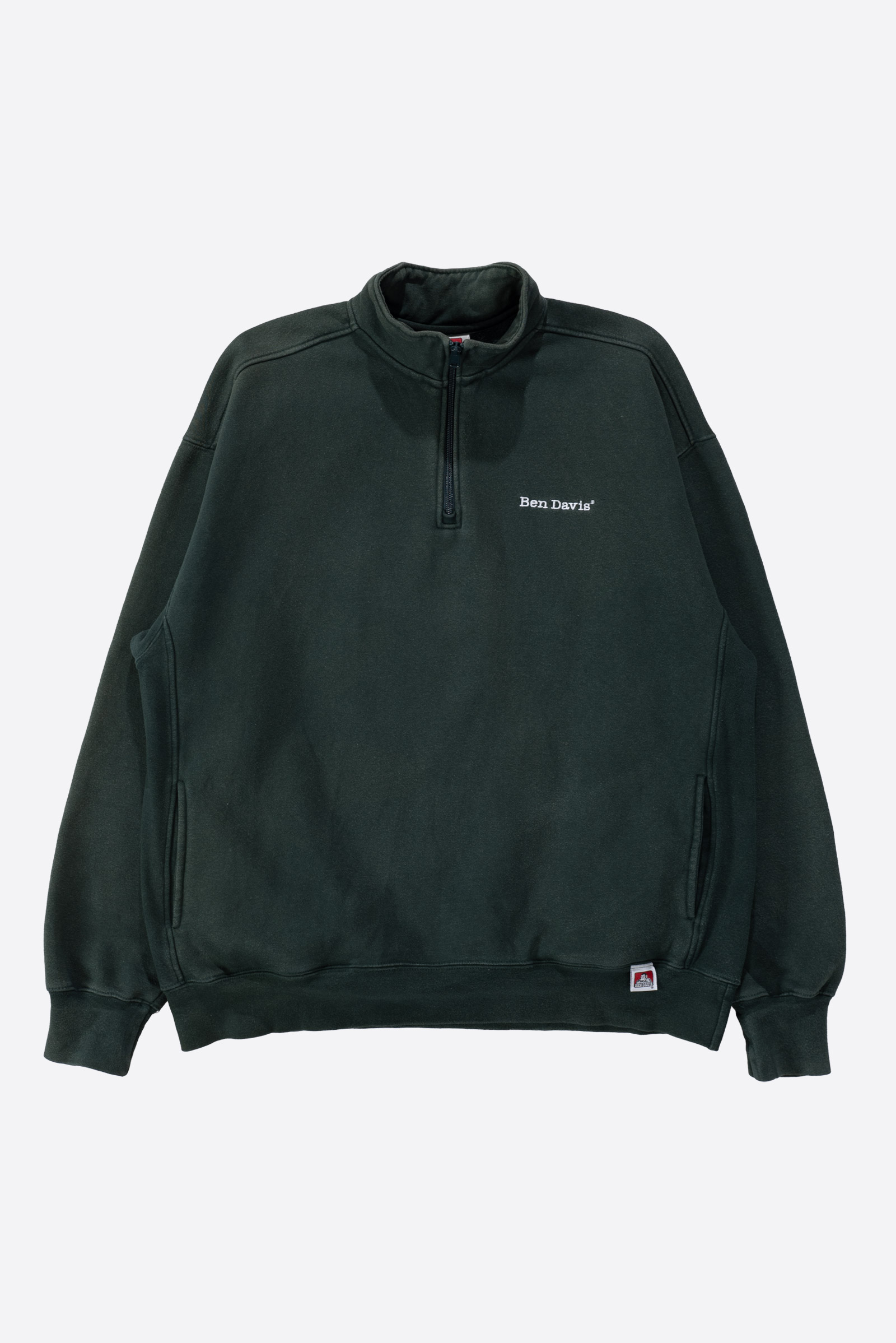 벤데이비스 화이트 라벨로 출시 된 아시아판 코튼 하프넥 스웻셔츠입니다. 빈티지한 두께감과 색감이 돋보이는데, 빈티지 제품은 아니고 현행입니다. 전반적인 물빠짐과 변색, 사용감이 다분히 있는 제품입니다. 실측 비교 후 구매부탁드립니다.