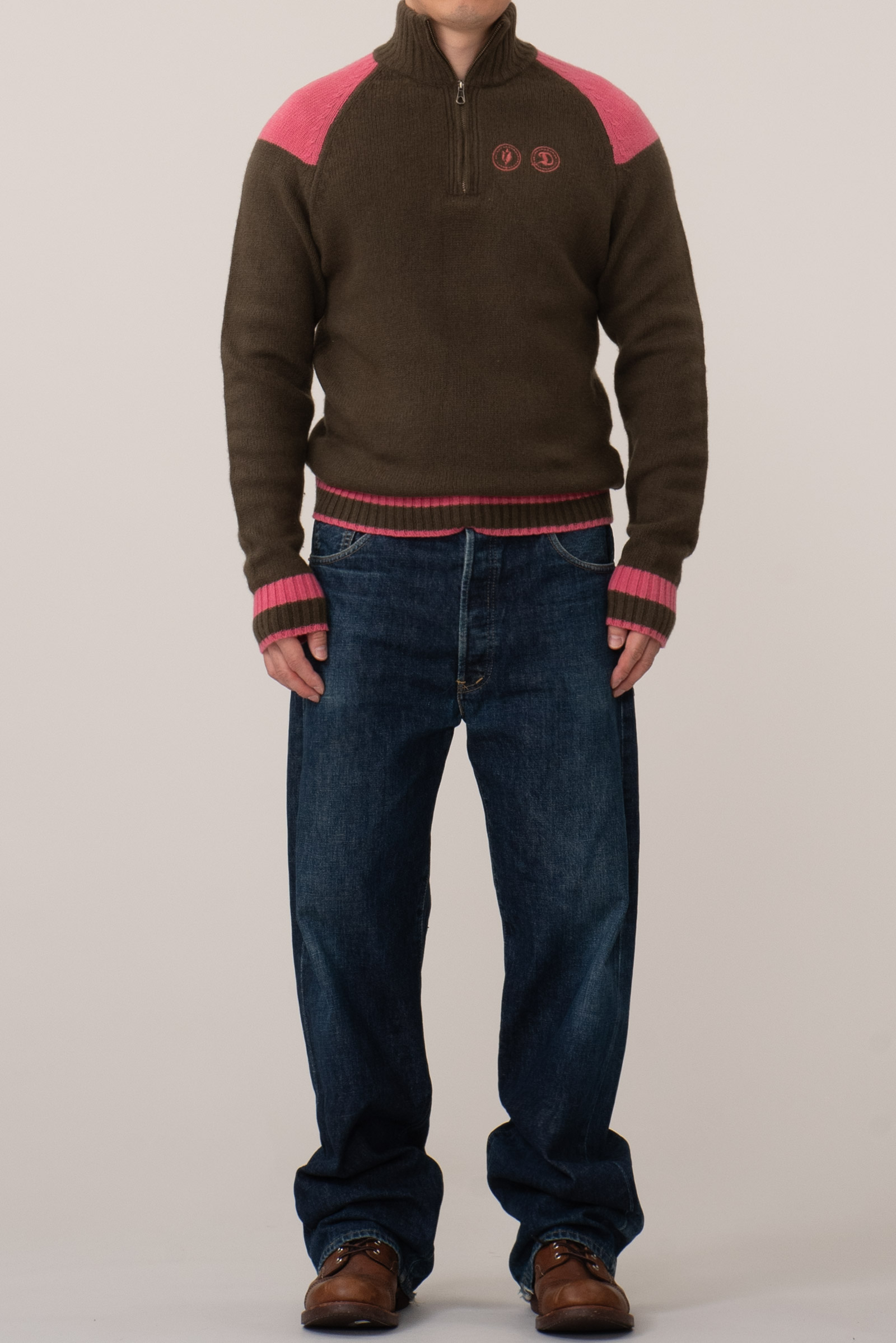 디젤의 하프집업 니트 스웨터입니다. 샤이한 색조합의 제품으로 몸에 꼭 붙게 입는 스타일입니다. 사용감이 있긴 하나 딱히 문제없는 컨디션입니다. 실측 비교 후 구매부탁드립니다.