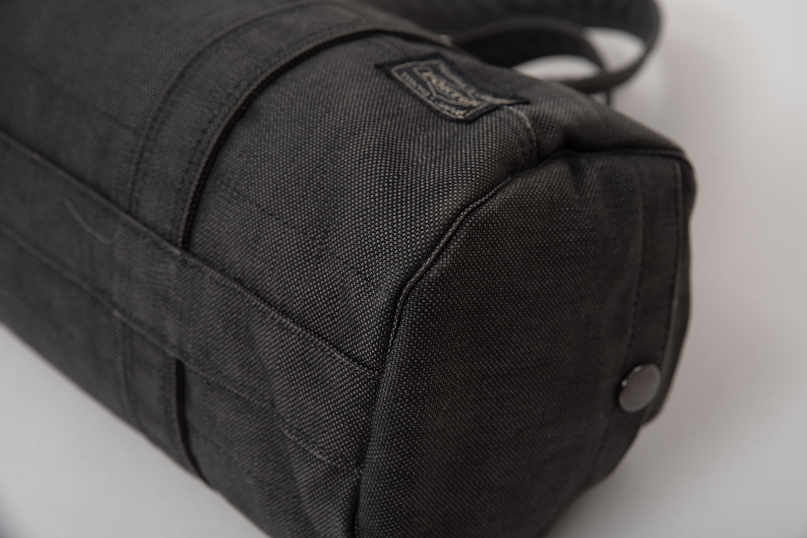 세계적인 대인기를 자랑하는 일본의 장인정신 브랜드, 요시다 포터의 스모키 보스턴 스몰입니다. 블랙 데님 캔버스 소재라 페이딩과 대미지로 색과 모양이 여물어지며 변해가는 과정을 패션으로 즐길 수 있는 제품입니다. 가장자리가 잘 닳는 소재인데, 소개하는 제품은 사용감은 있으나 가장자리 닳음은 아직 없네요. 작지만 적당히 담을 수 있는 크기의 가방이라 귀엽게 활용하기 좋은 피스에요.