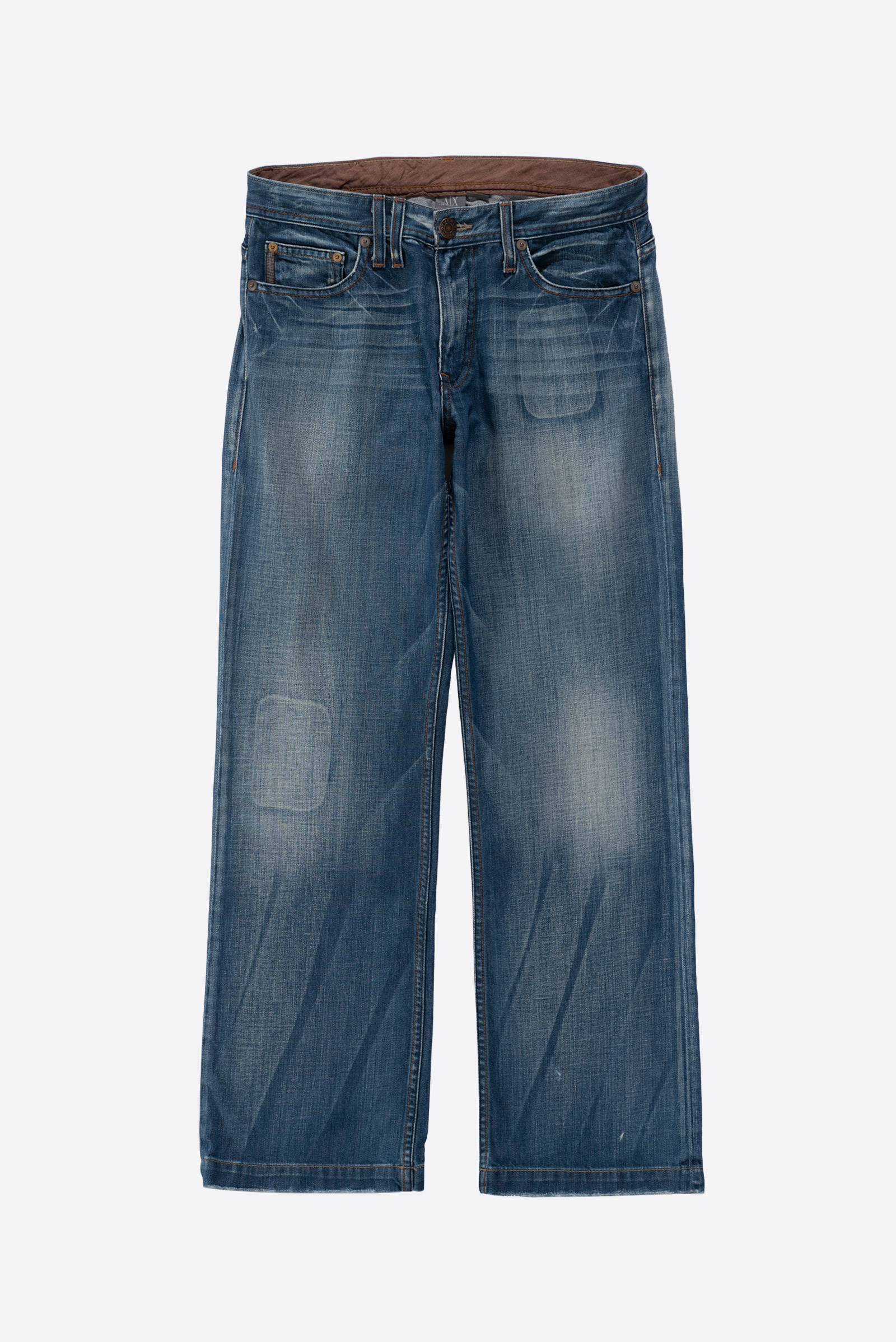조르지오 아르마니의 하위 브랜드인 아르마니 익스체인지의 Wrinkle Jean 입니다. 2000 년대 초반에 제작 된 제품으로, 아르마니 익스체인지로는 드물게(?) 미국에서 생산 된 오리지널 피스입니다. 밑위가 비교적 짧은 로라이즈로 스트레이트 핏의 딱 2000 년대 초반대 스타일의 제품입니다. 디젤 자탄 풍이라고 할까요. ㅎㅎ 전반적으로 깨끗한 편입니다. 실측 비교 후 구매부탁드립니다.