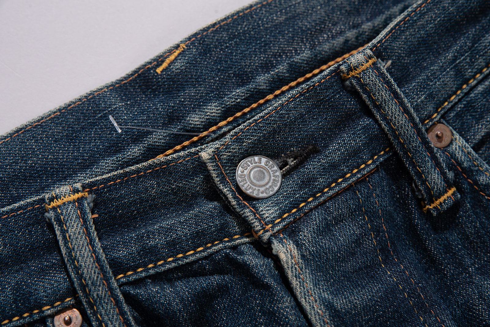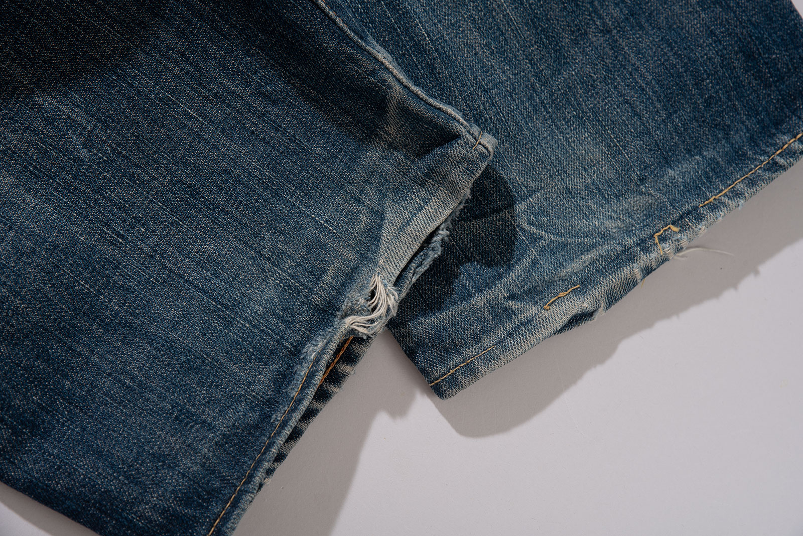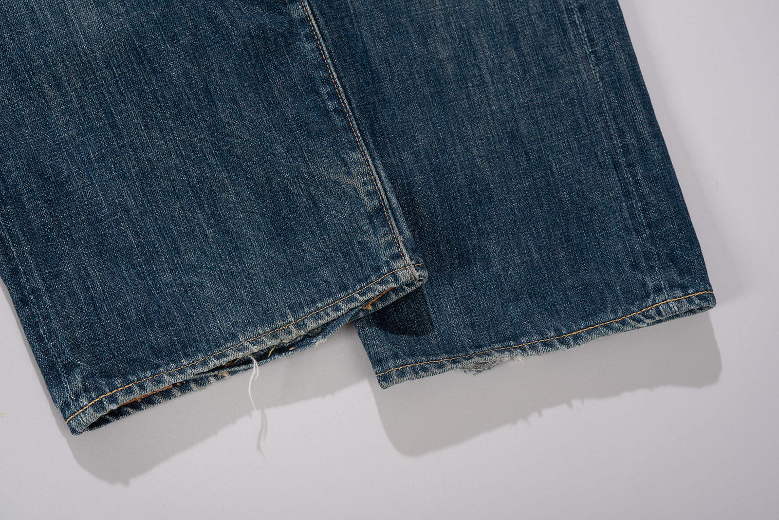 90- 2000 년대 초반에 제작 된 빈티지 에비수 No.2 2001 팬츠입니다. 표기 사이즈 31 인치였으나 수축으로 약 28~29 인치 정도의 허리 둘레를 가졌으며, 역시 수축으로 인해 기장도 많이 줄었습니다. 별도 수선은 없으나 전반적으로 사용감이 많은 제품이에요. 허리 딱 맞게 입으면서 에비수 특유의 과한 와이드 핏을 정사이즈로 즐기기엔 더할나위없는 피스입니다.
