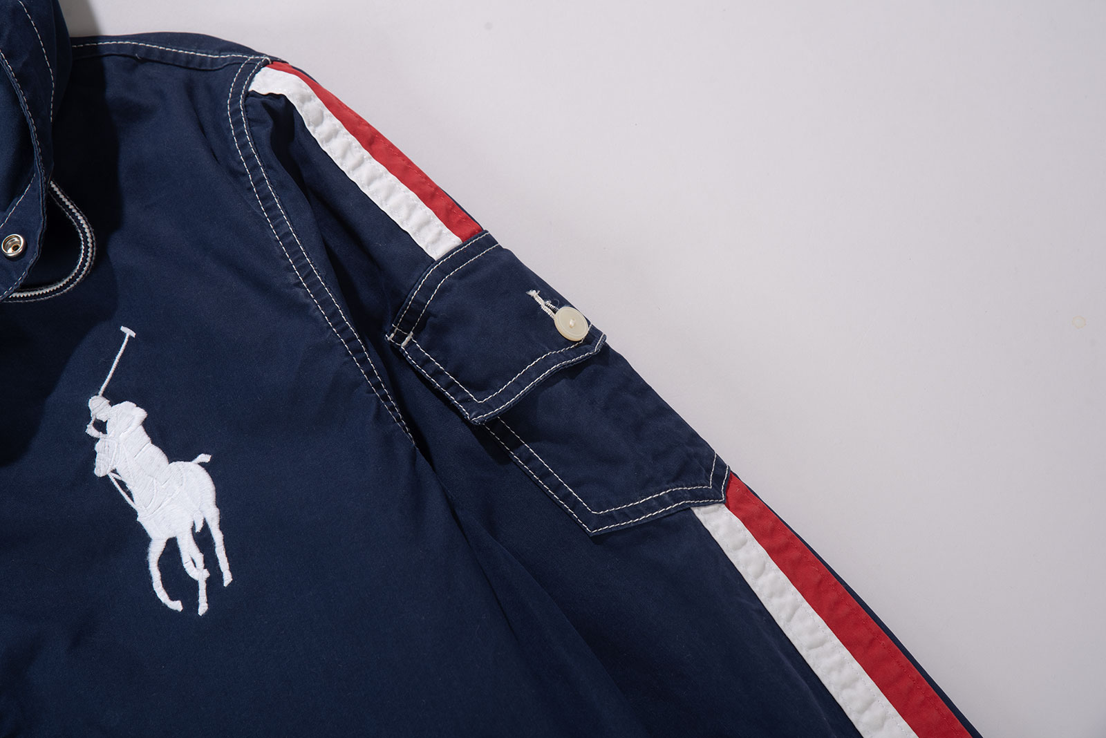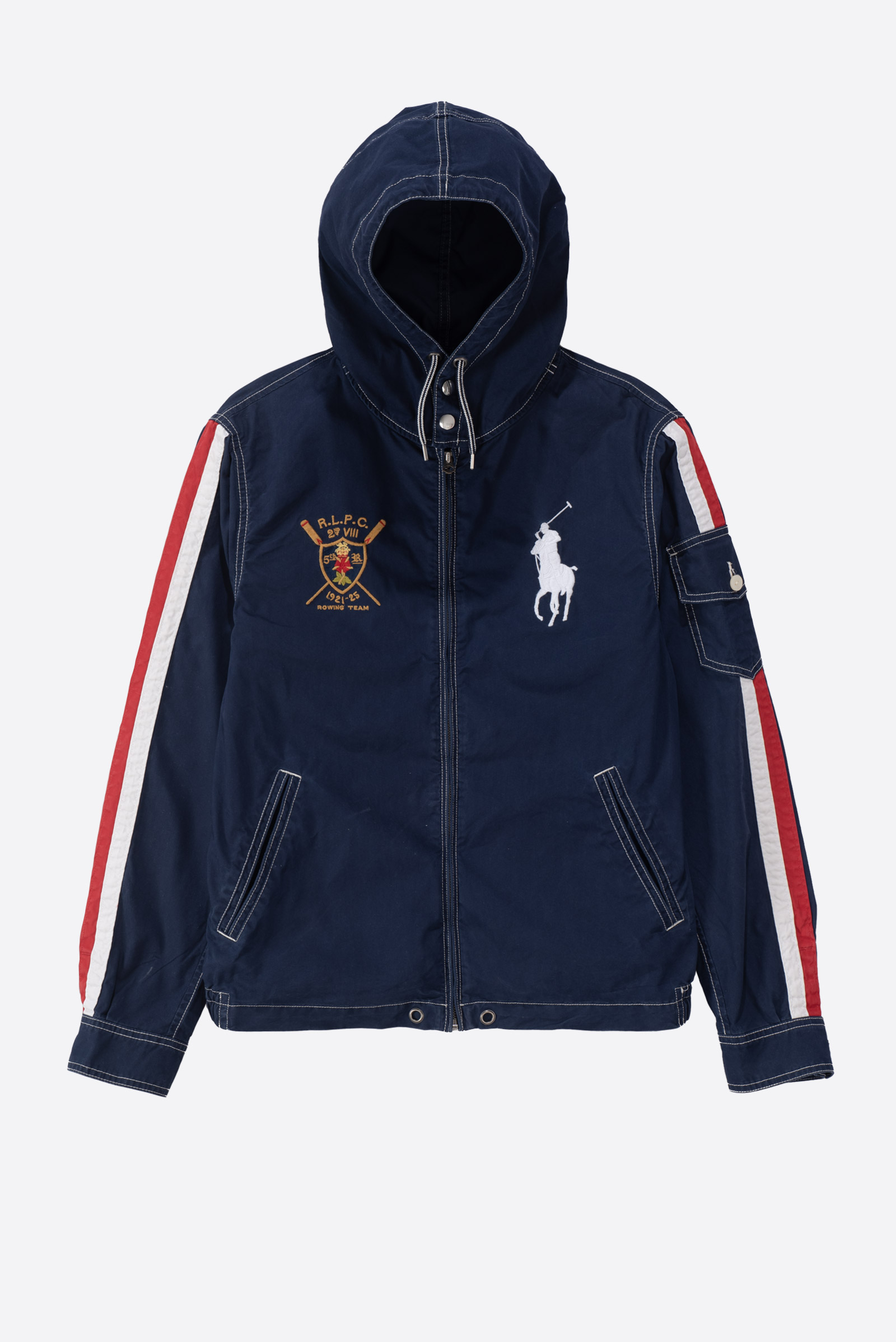 폴로 랄프로렌 조정 팀 후디드 재킷입니다. 후드가 구성 된 적당한 두께의 빳빳한 질감과 양 팔의 스포티한 라인이 가미 된, 경쾌하면서 고급스럽고 우아한 재킷입니다. 발렌시아가로 주가를 한창 달구고 있는 빅포니 로고에 가상의 조정 크레프트 클럽 로고가 워싱 된 코튼 소재 위에 있음으로 더욱 더 화려해진 느낌입니다.