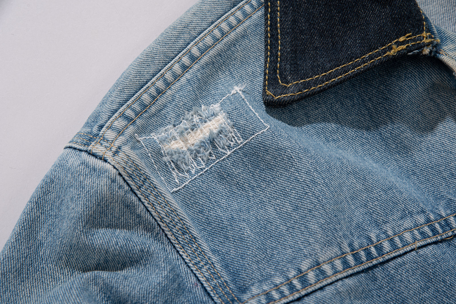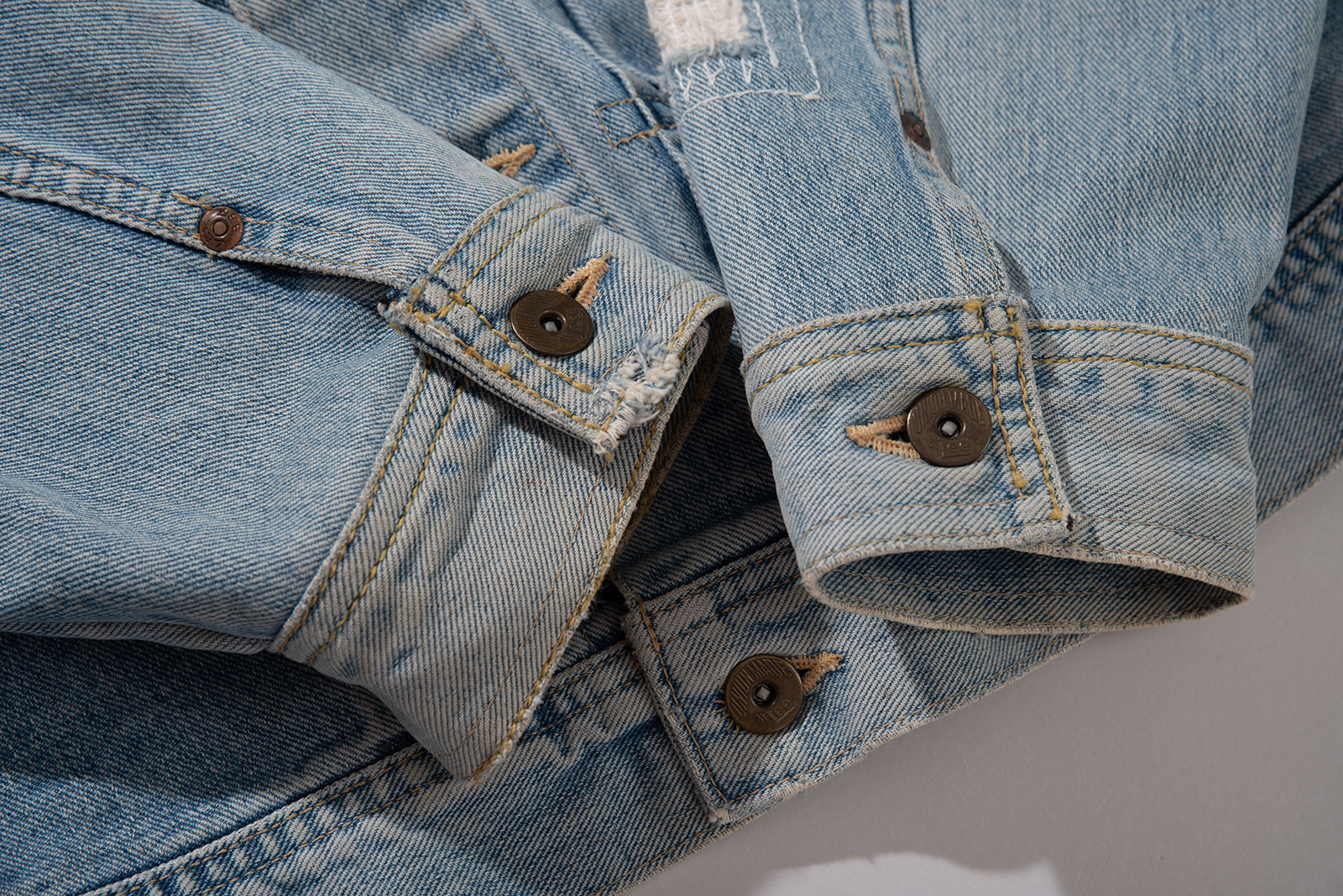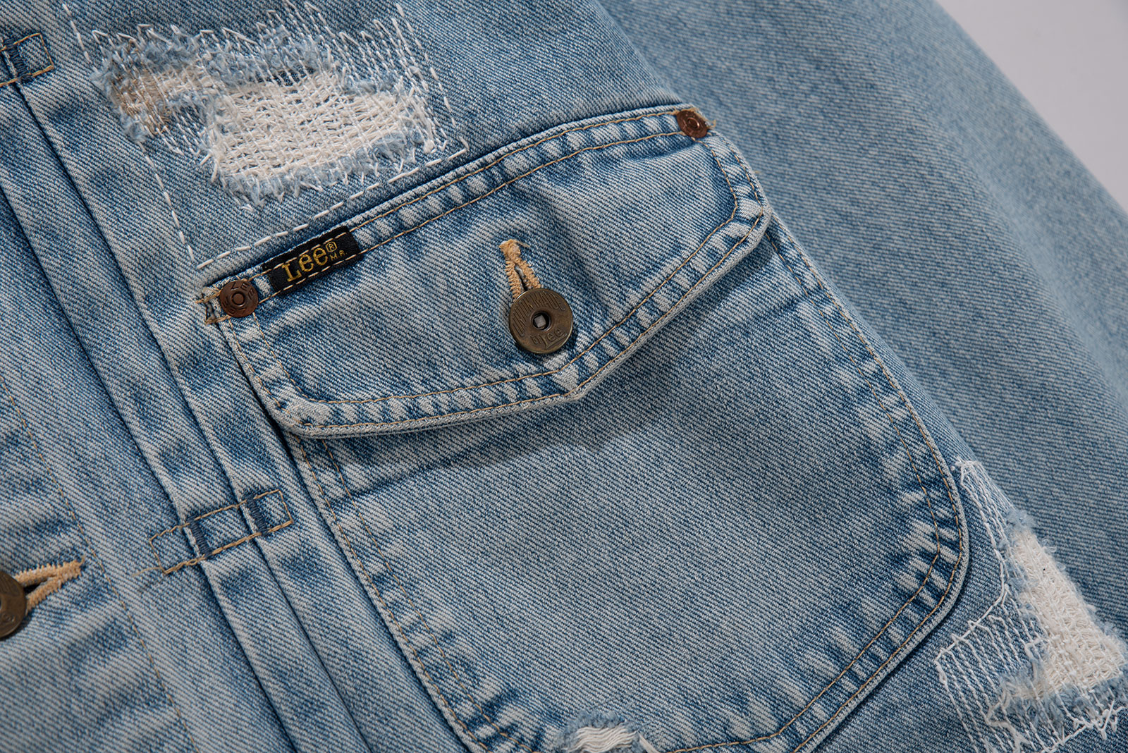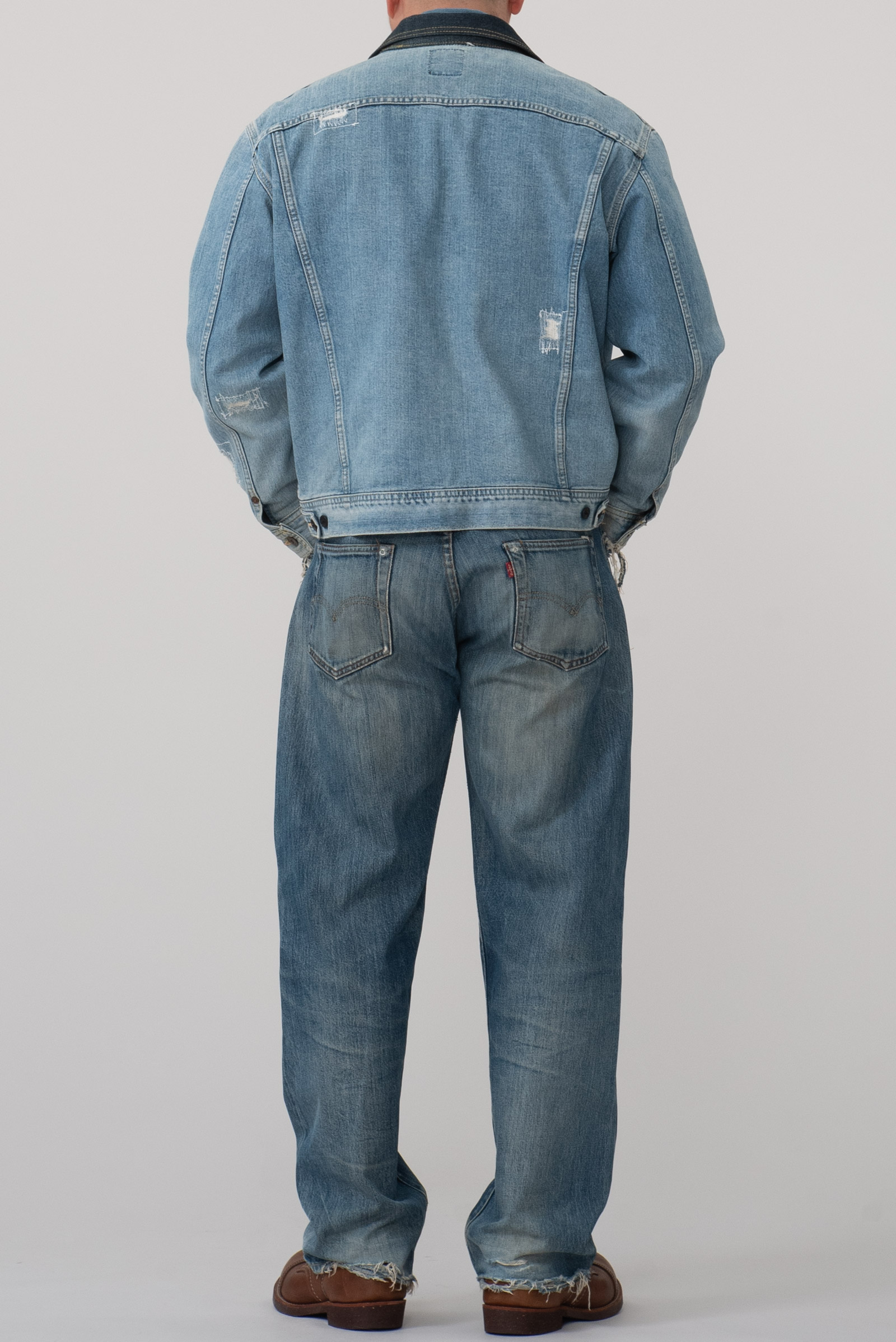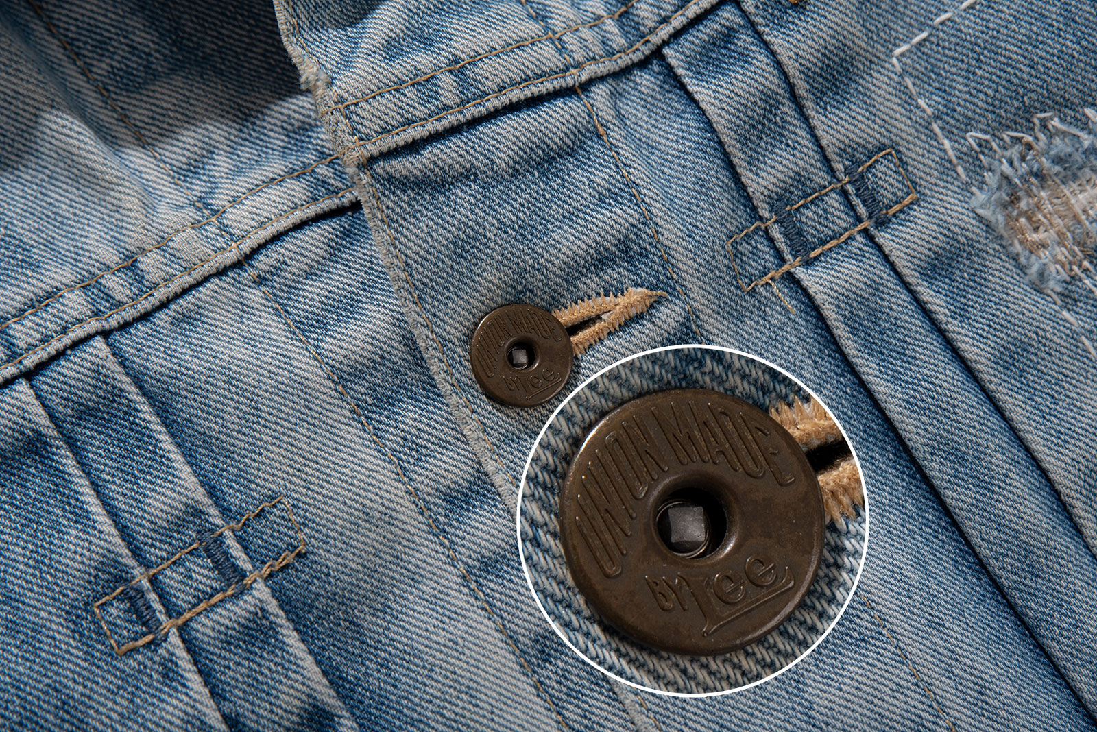 2000 년대 초중반에 제작 된 에드윈 라이센스 Lee Riders 1st 카우보이 트러커입니다. 리페어 가공이 된 멋스러운 재킷으로, 리 특유의 동글동글한 쉐입이 돋보이는 피스에요. 현 시점에선 구경하기 드문 개체 중 하나입니다. 적당히 사용감이 있으며 재킷 전반적인 분위기에 잘 어울리는 수준이라 생각합니다. 유니온 메이드 도넛형 버튼과 납짝 리벳, 초코 단추가 사용 되어 빈티지 피스의 디테일을 잘 살렸습니다.