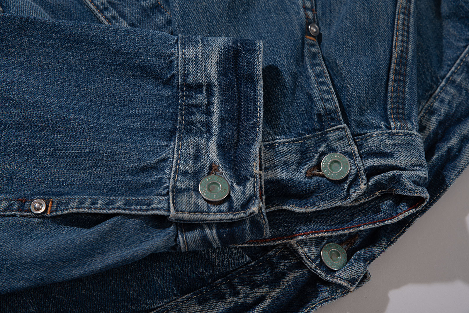두산 초창기 시절 국내 정발판 폴로진 2nd 타입 트러커입니다. RRL의 퀄리티를 넘보던 만듦새좋고 수준높던 브랜드라 아쉽게 역사의 뒤안길로 사라지게 되었지요. 2nd 타입의 클래식한 디자인을 바탕으로 하되 폴로진 특유의 감성으로 조금 더 젊고, 캐주얼하게 잘 다듬은 재킷입니다. 사용감이 거의 없는 새상품급 컨디션으로 입고 되었습니다. 재킷 팔 부분으로 올트임이 좀 있는데, 워싱 디테일이에요. 실측 비교 후 구매부탁드립니다.