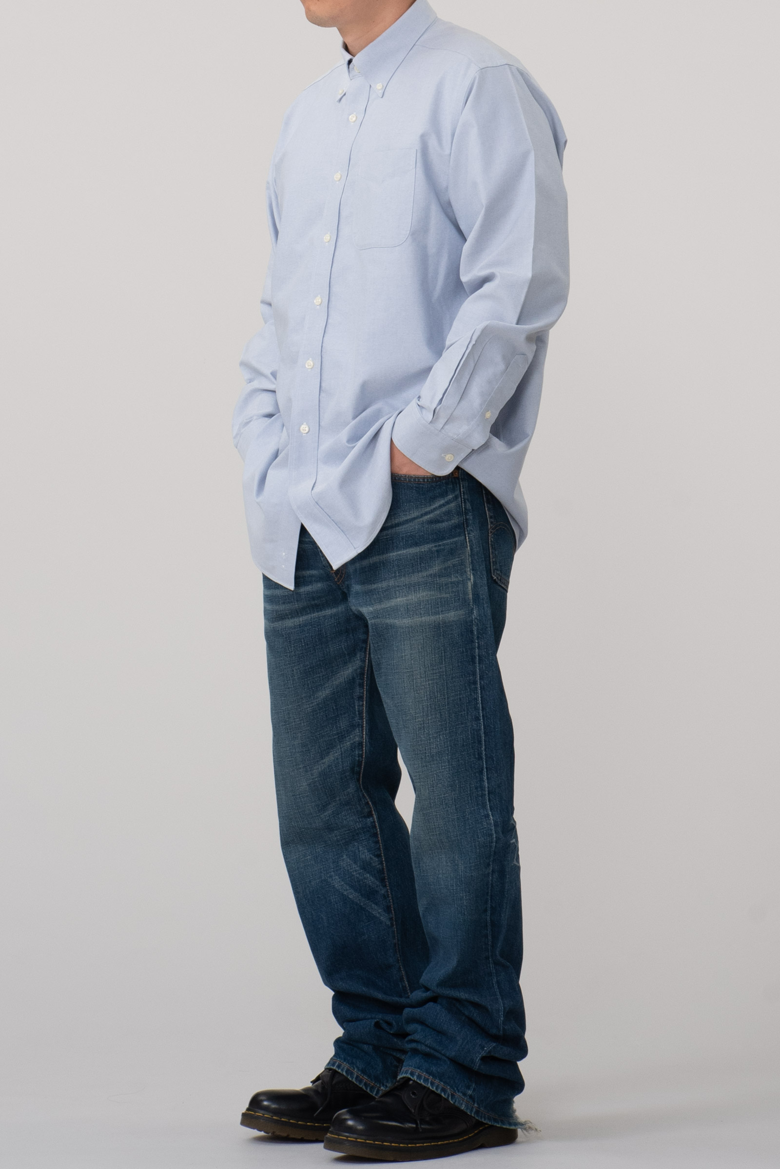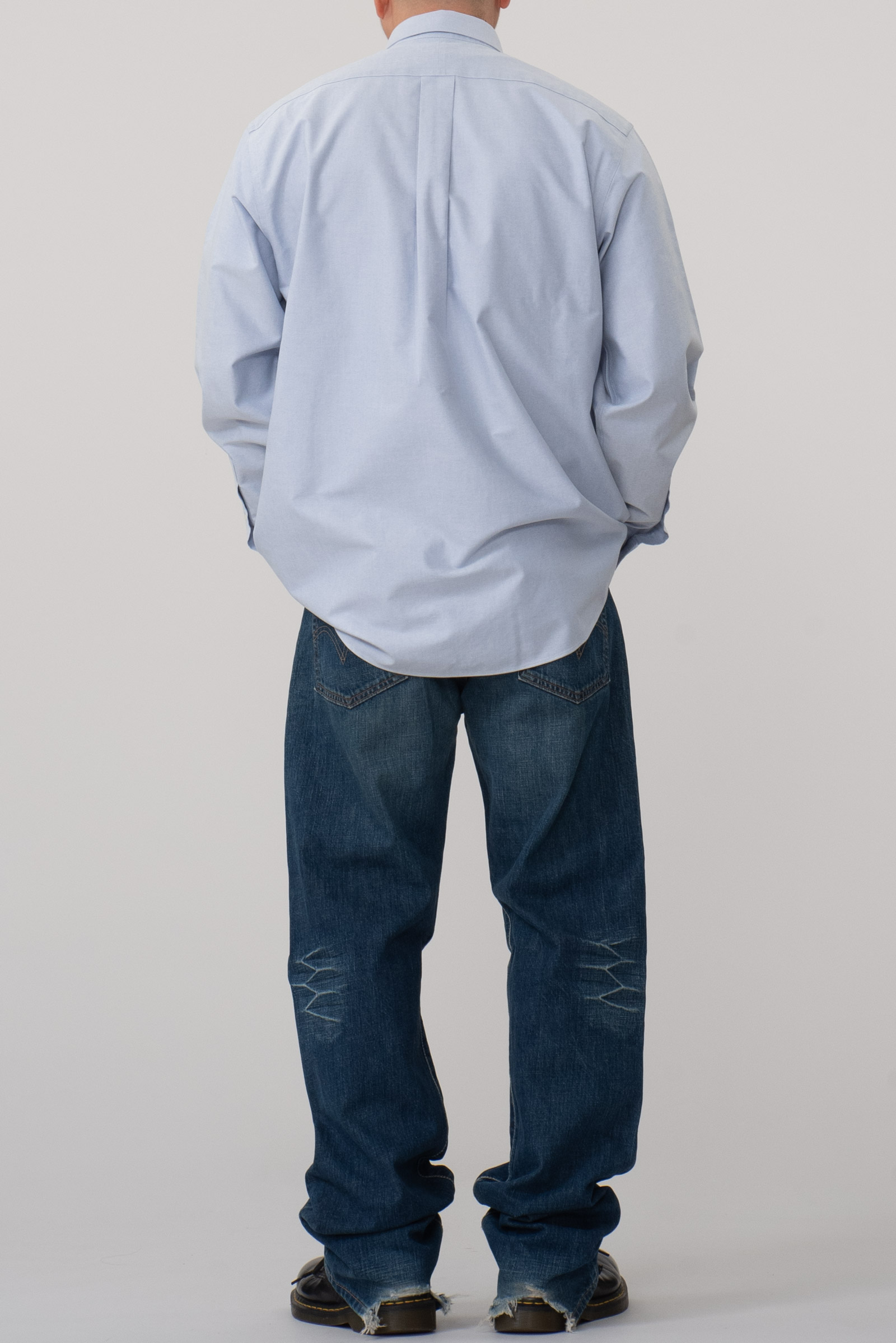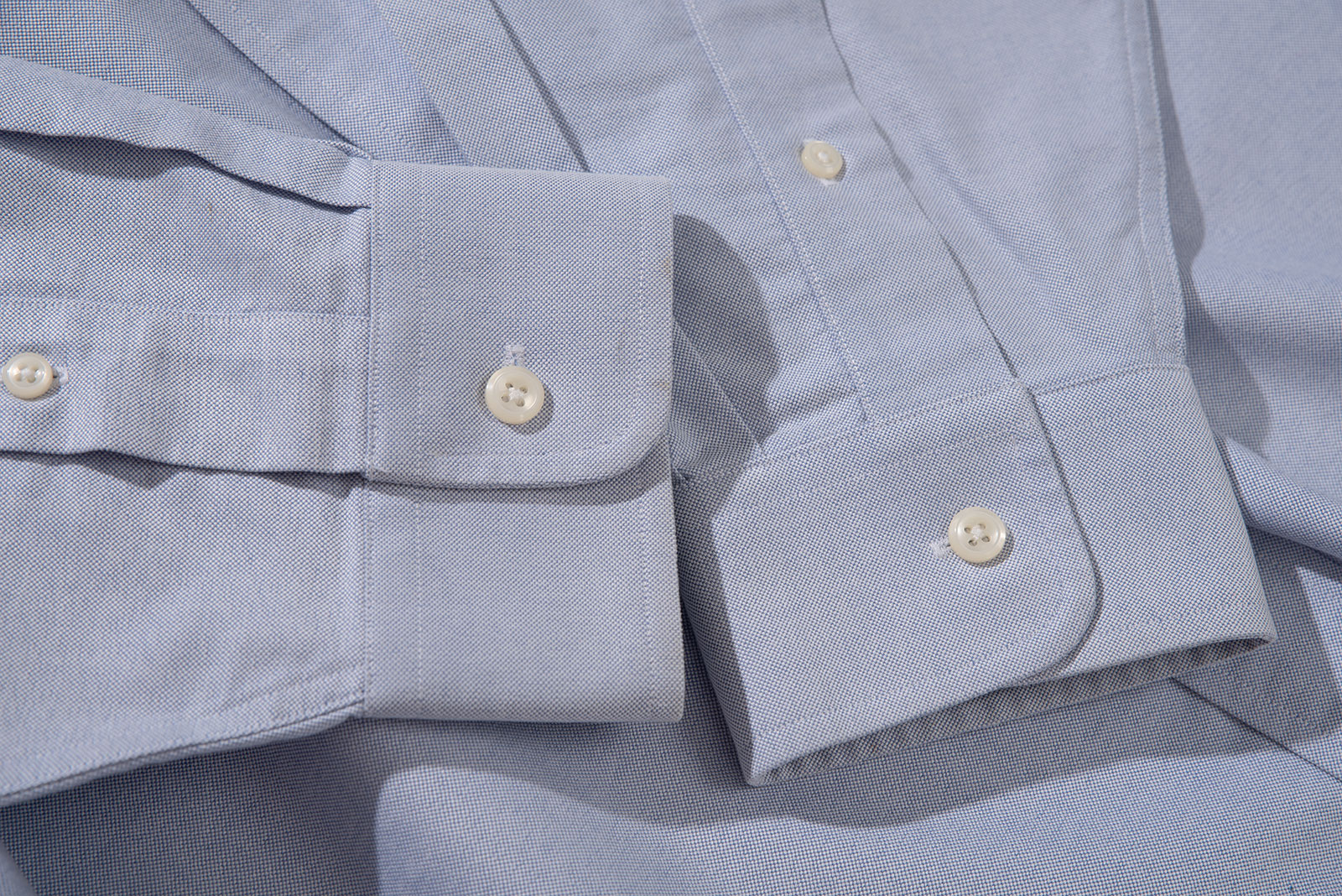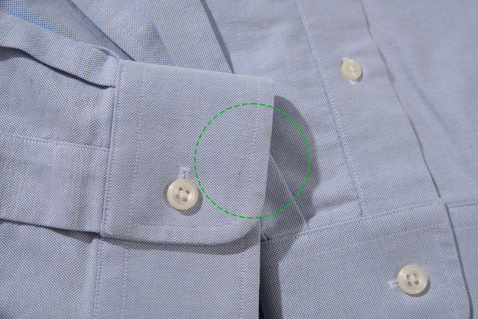 엘엘빈의 옥스포드 버튼 다운 셔츠입니다. 구김 방지 기능이 있는 원단인데, 주름이 지긴 집니다. ㅎㅎ 원단 컨디션은 훌륭합니다만 접혀서 보관이 좀 됐던 모양입니다. 목하고 소매, 어깨 라인으로 해서 팔까지 선페이딩과 오염이 있습니다. 이런 점 참고하시어 구매부탁드려요.