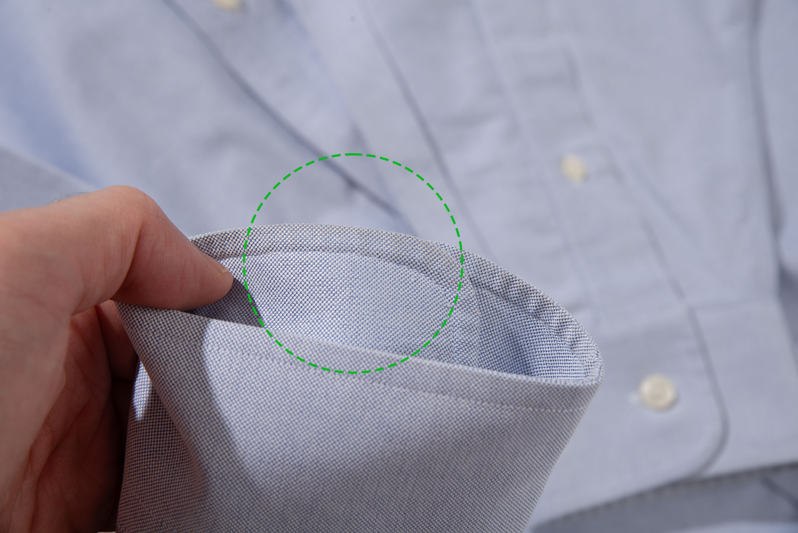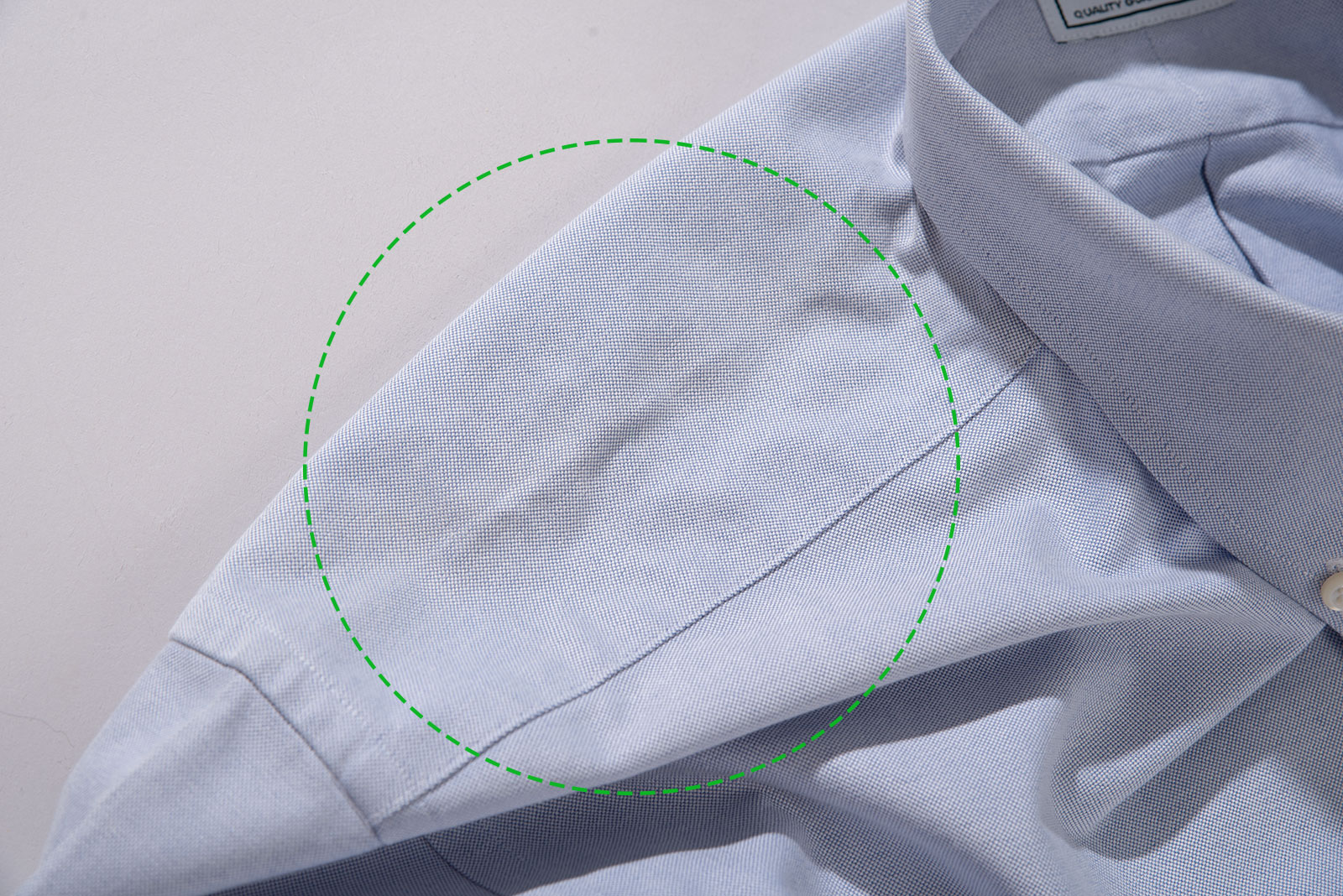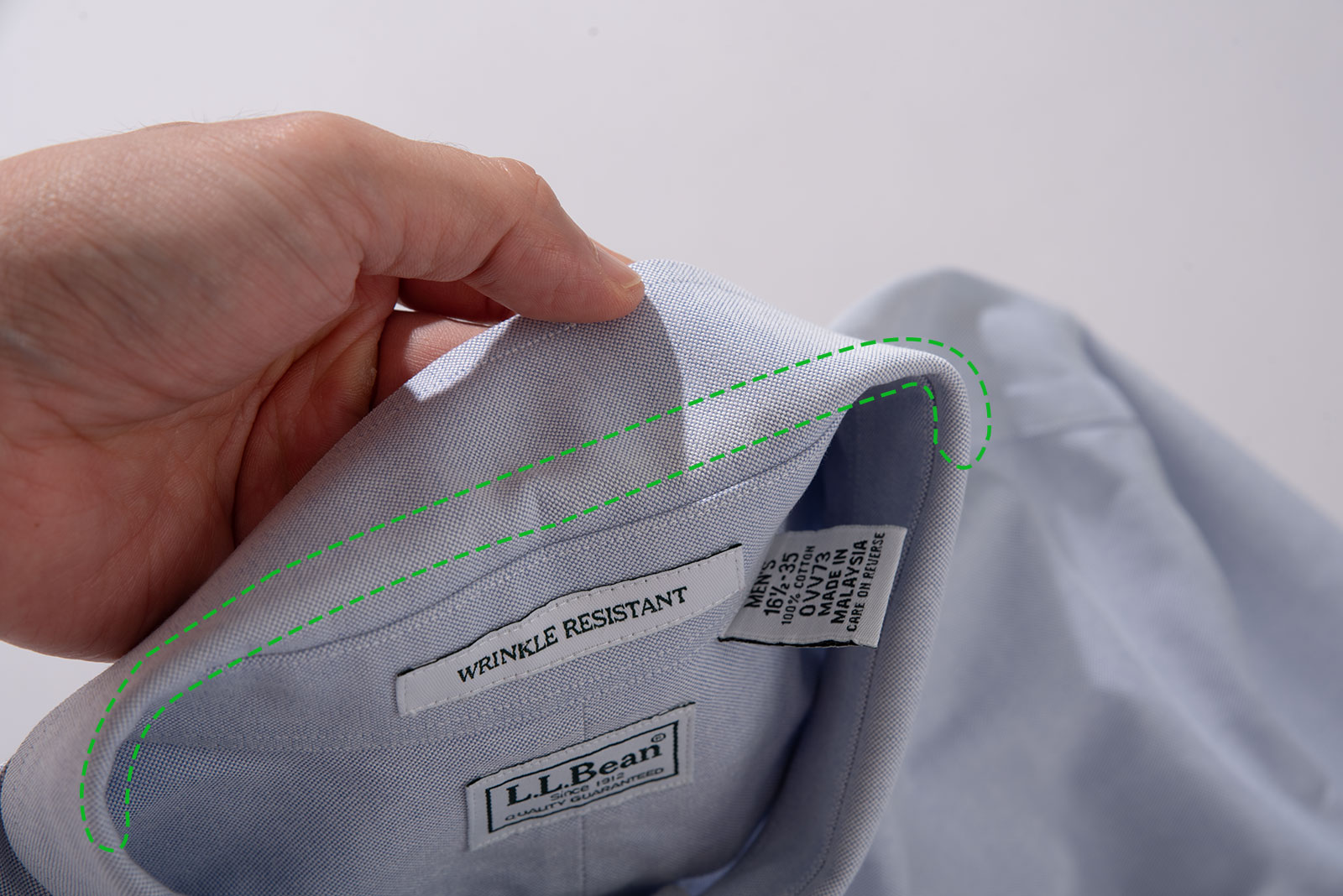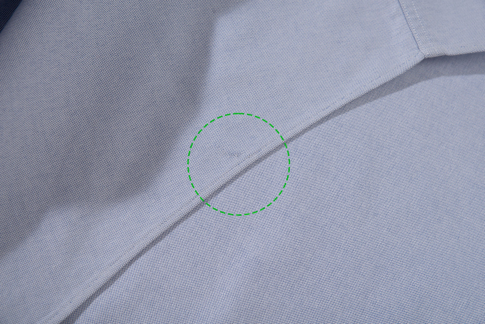 엘엘빈의 옥스포드 버튼 다운 셔츠입니다. 구김 방지 기능이 있는 원단인데, 주름이 지긴 집니다. ㅎㅎ 원단 컨디션은 훌륭합니다만 접혀서 보관이 좀 됐던 모양입니다. 목하고 소매, 어깨 라인으로 해서 팔까지 선페이딩과 오염이 있습니다. 이런 점 참고하시어 구매부탁드려요.