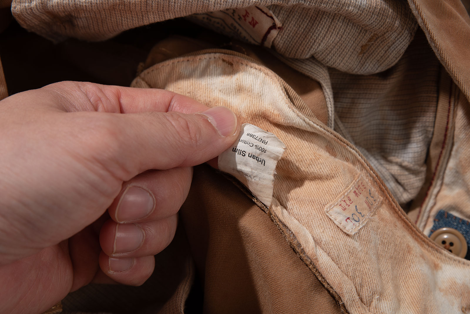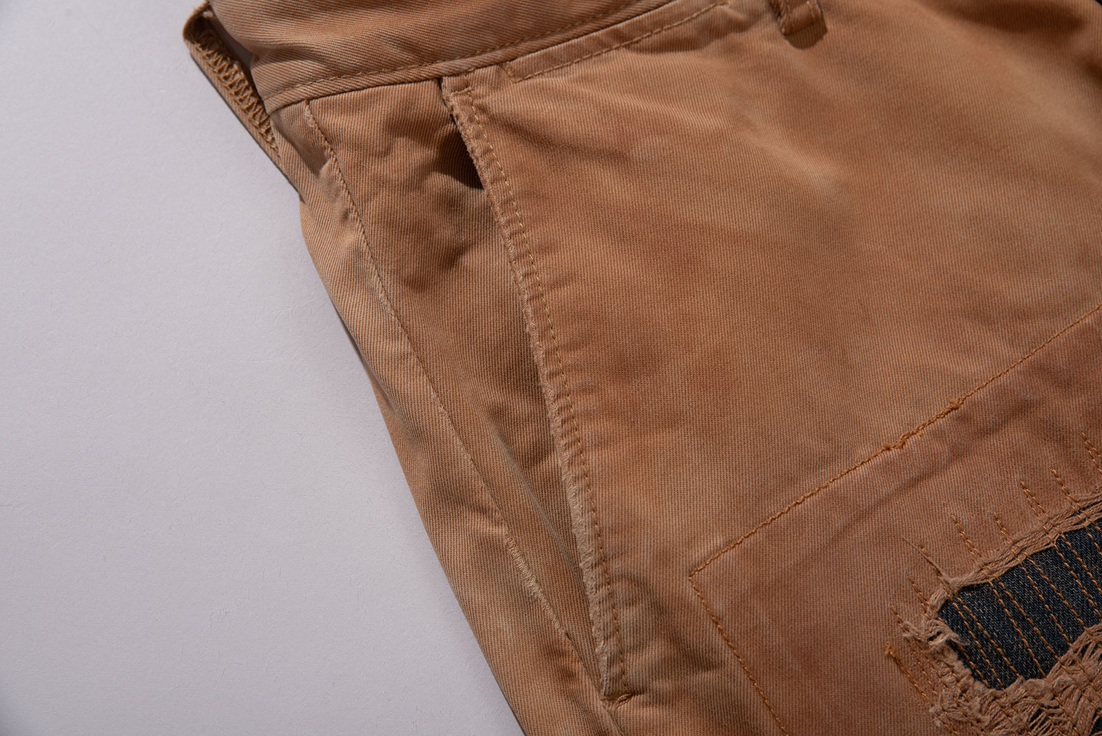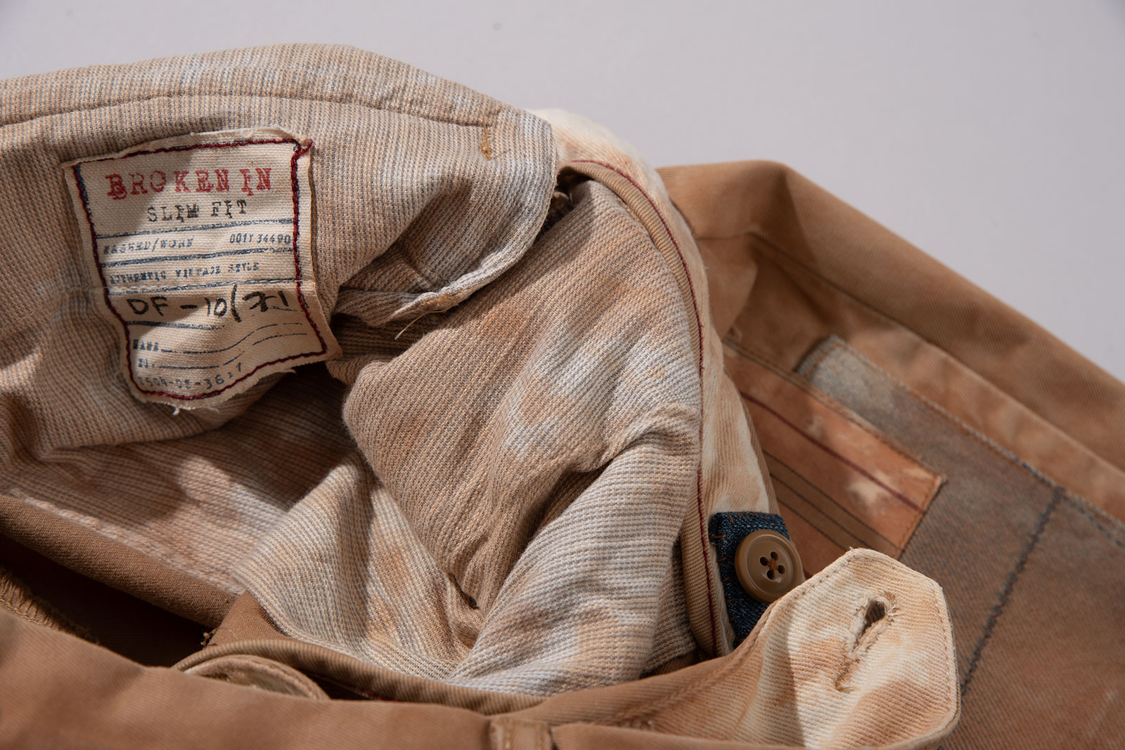 J Crew의 Broken in 라인의 패치워크 치노입니다. 빈티지 워싱 가공과 패치 워크 디테일 등이 일본의 유명 레플리카 브랜드 못지 않은 퀄리티를 보여주지요. 아이디얼 지퍼가 사용되었고 원단 두께감도 좋습니다. 전체적인 황변과 오염 등이 있는데, 빈티지 워싱으로 표현 된 부분입니다. 실측 비교 후 구매부탁드립니다.