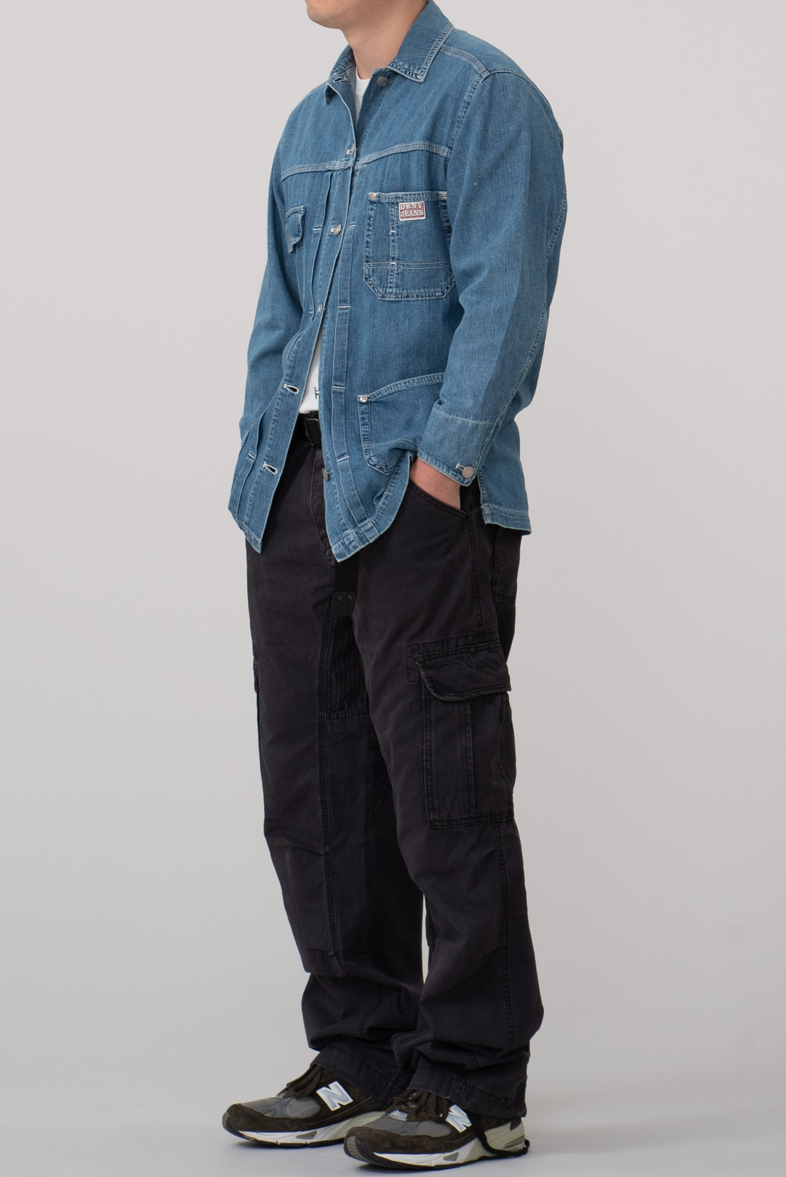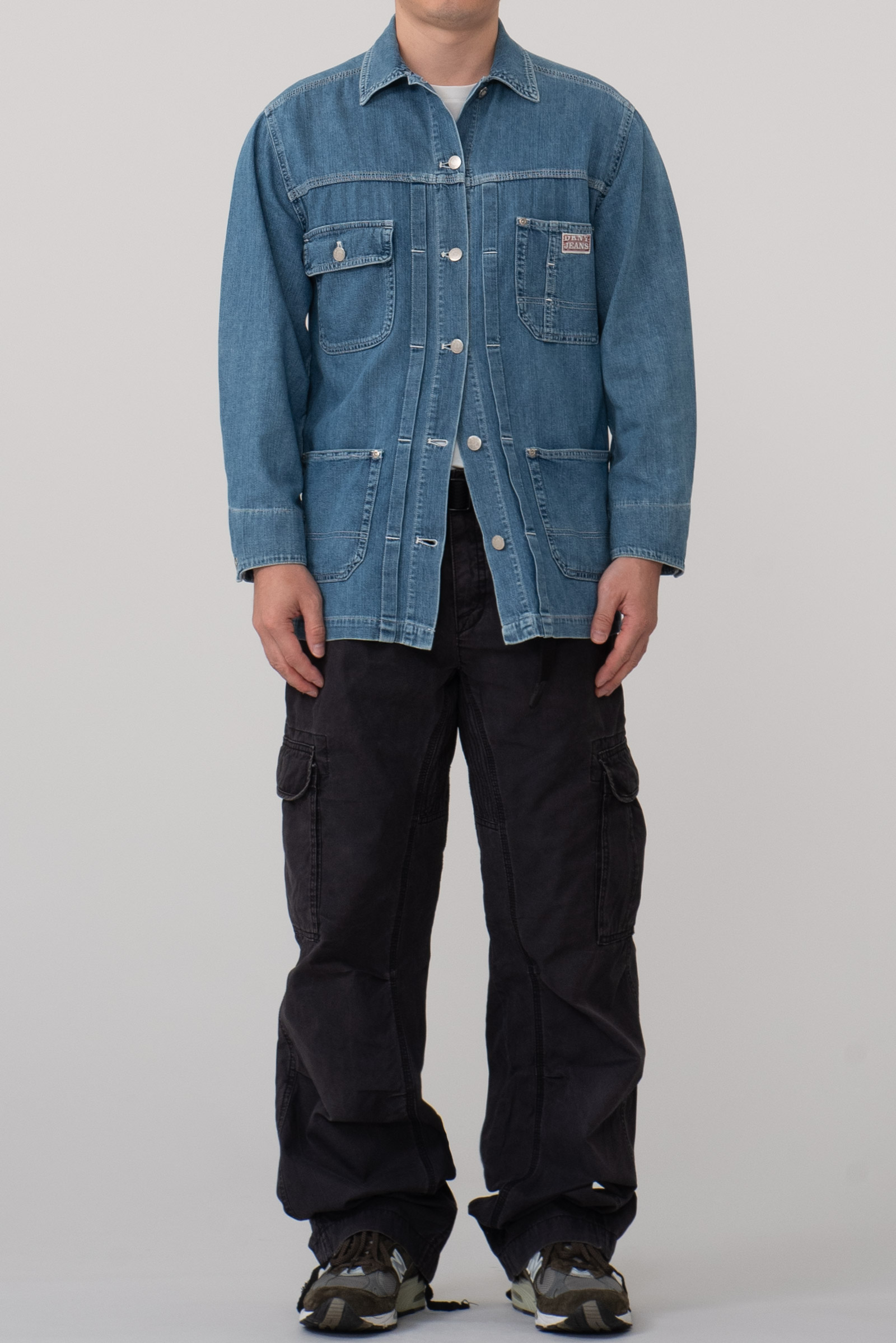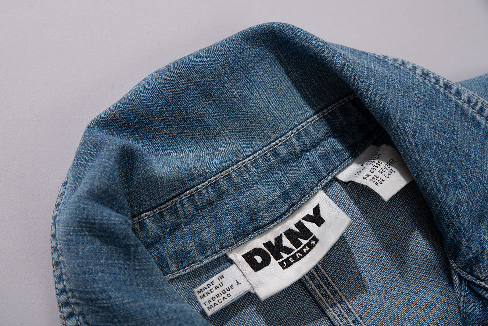 DKNY의 캐주얼 라인으로 론칭 된 DKNY JEANS의 90 년대 제작 된 빈티지 초어 재킷입니다. 2nd type 트러커처럼 액션 플리츠가 잡혀 있는 것이 특징인데요. 초어 재킷에선 흔치 않은 디테일입니다. 작은 구멍도 있고 전체적으로 사용감이 충분히 느껴집니다. 얇은 샴브레이 원단이라 가벼워 착용감은 좋아요. 옷 만듦새 좋습니다만 무엇보다도 핏이 좋네요. 미국 브랜드이나, 워크웨어 브랜드와 차별화 된 세련 된 맛이 있습니다.