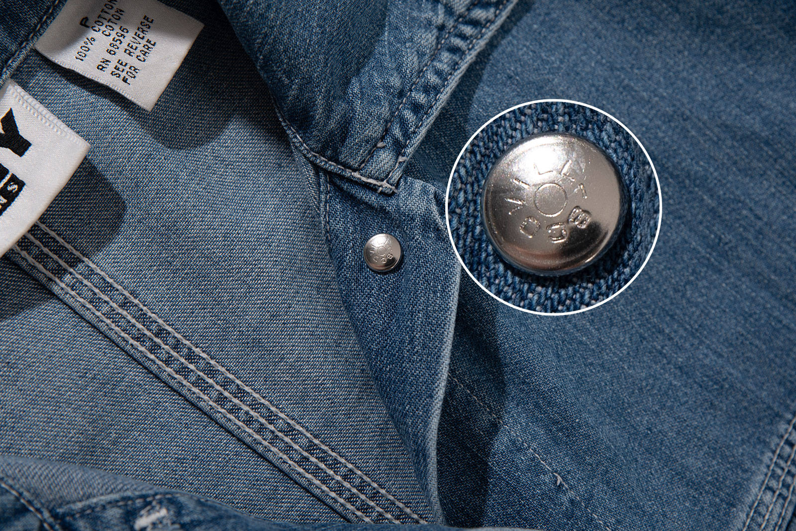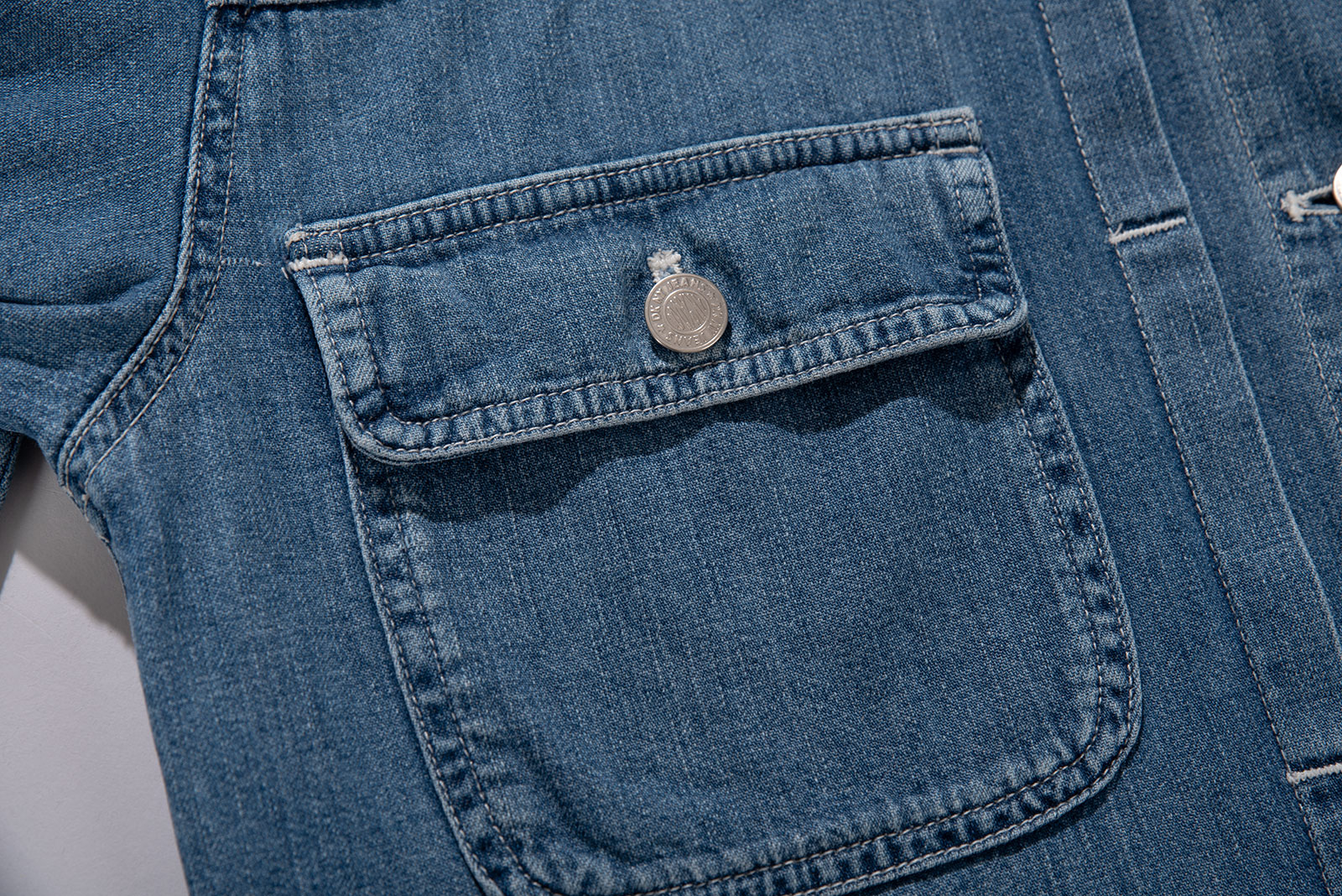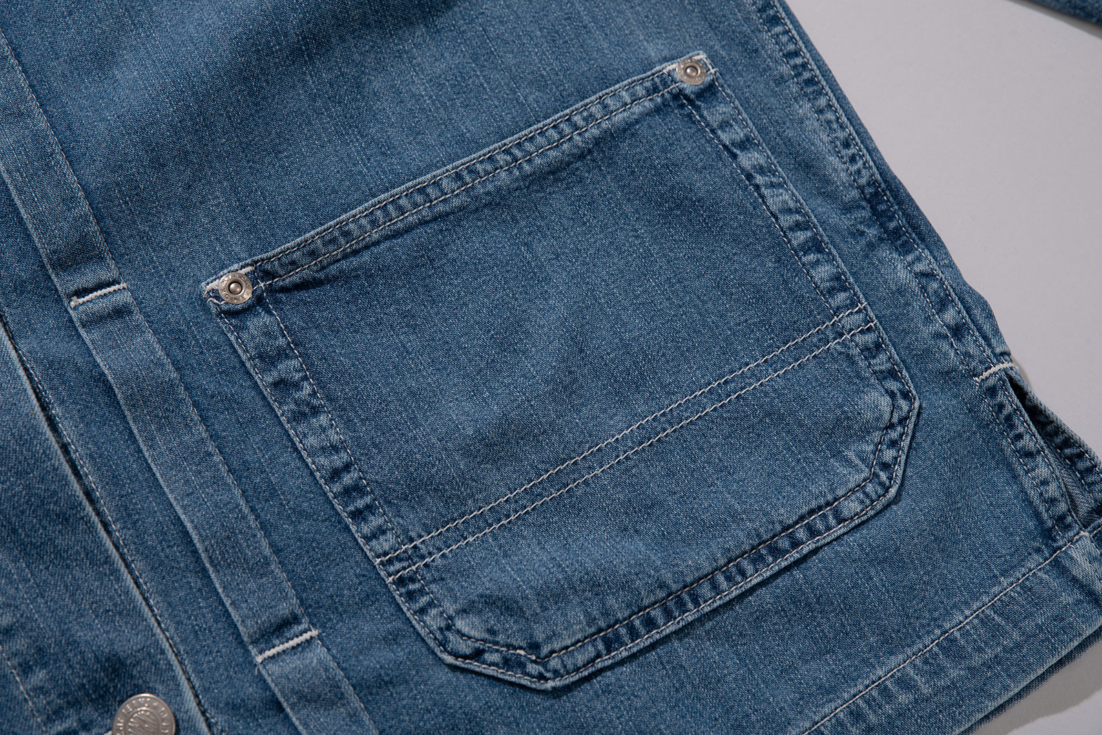DKNY의 캐주얼 라인으로 론칭 된 DKNY JEANS의 90 년대 제작 된 빈티지 초어 재킷입니다. 2nd type 트러커처럼 액션 플리츠가 잡혀 있는 것이 특징인데요. 초어 재킷에선 흔치 않은 디테일입니다. 작은 구멍도 있고 전체적으로 사용감이 충분히 느껴집니다. 얇은 샴브레이 원단이라 가벼워 착용감은 좋아요. 옷 만듦새 좋습니다만 무엇보다도 핏이 좋네요. 미국 브랜드이나, 워크웨어 브랜드와 차별화 된 세련 된 맛이 있습니다.