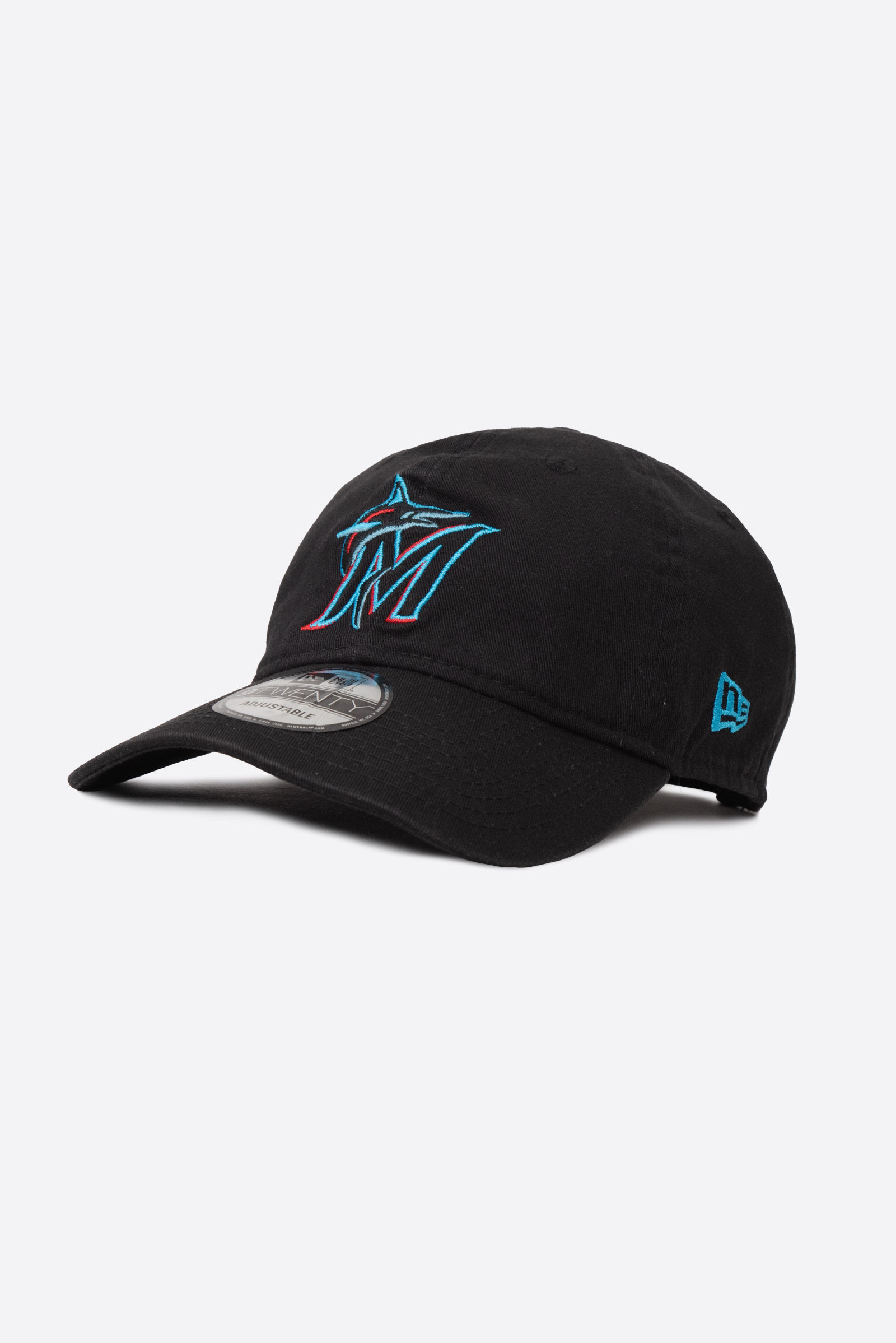 플로리다의 다채로운 문화와 해양 도시의 아이덴티티를 잘 반영한 청록색의 바다를 상징하는 마이애미 말린스의 뉴에라 9Twenty 볼캡입니다. 플로리다 말린스로 창단되었다가 2012 년에 구단명을 지금의 마이애미 말린스로 리브랜딩하였습니다. 미사용 새상품입니다만 짝에 눌려 있었던 터라 챙 휘어짐이 있습니다. 펴가면서 쓰실 분에게 권해드립니다.
