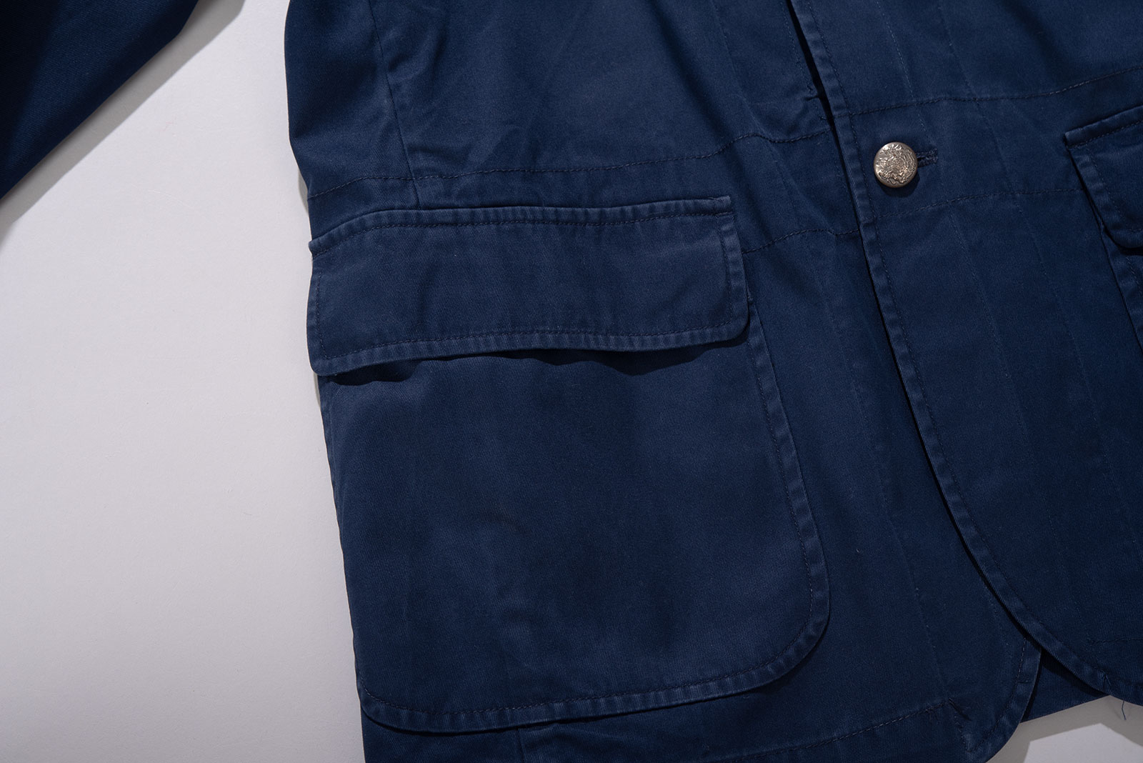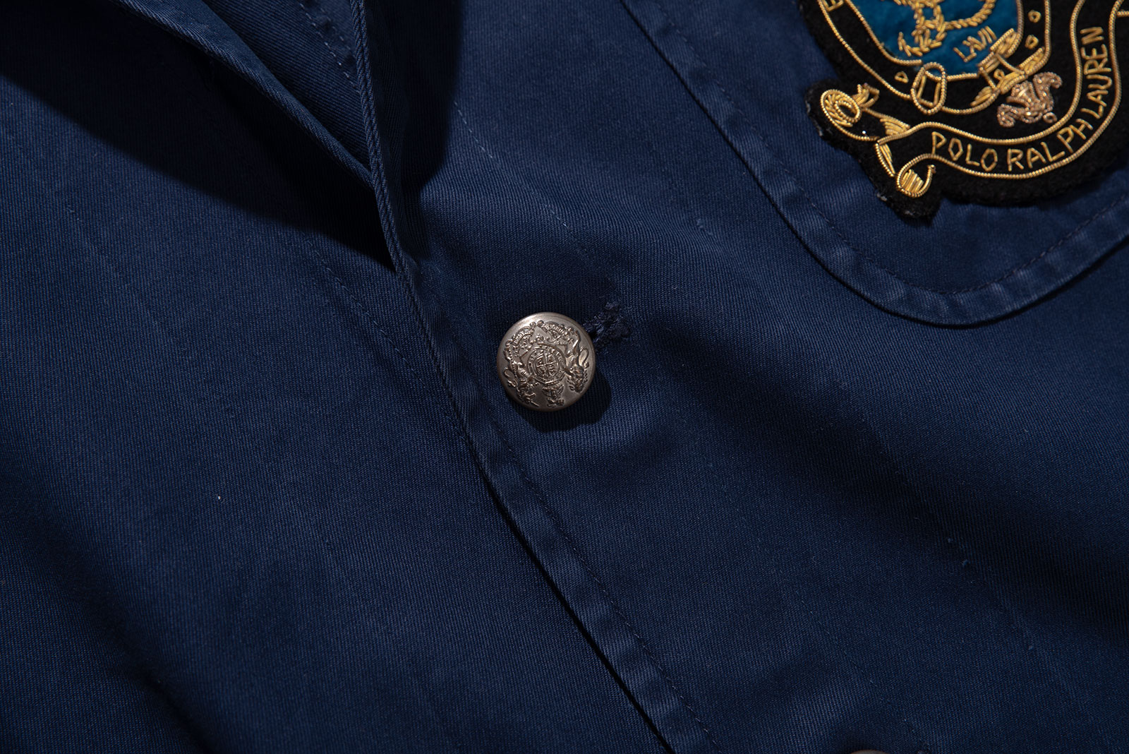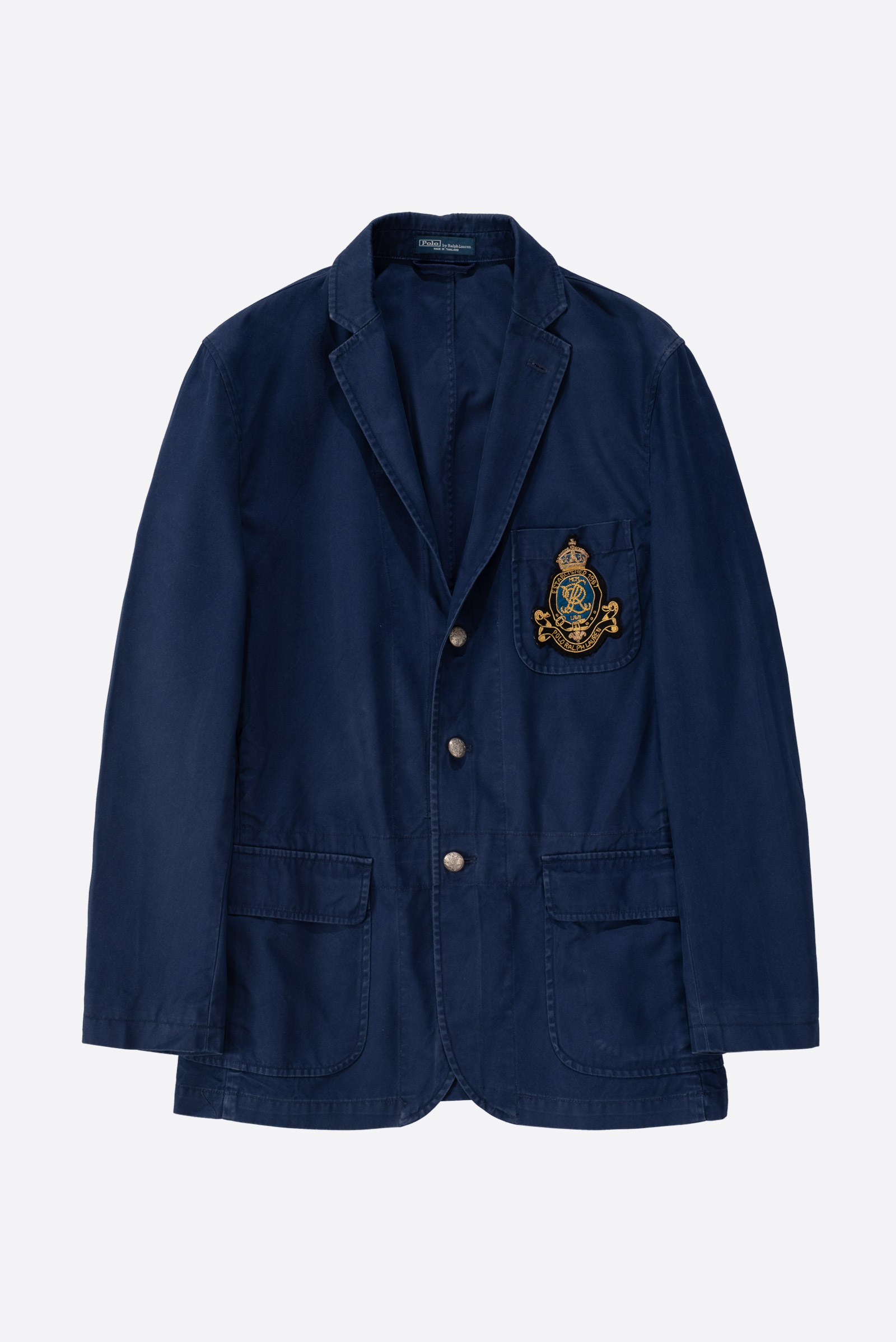 폴로 특유의 미국식 프레피 감성과 영국식 트레디셔널이 절묘하게 짬뽕 된, 2000 년대 초반에 제작 된 폴로 랄프로렌의 올드 3버튼 코튼 블레이져입니다. 폴로의 헤리티지를 잘 나타내는 피스로, 왕관과 앵커, 금사로 수놓인 로열 블루 바탕의 문장으로 영국 클럽 블레이저의 문양을 잘 차용해 폴로가 추구하는 미국식 럭셔리를 잘 나타냅니다. 타이트하게 재단 된 수트 재킷과 달리 가벼운 코튼 트윌 원단으로 초여름까지 걸치기 좋은 스포츠 코트입니다. 폴로 답게 퀄리티가 상당히 좋은 코튼 원단이 사용되어 광택이 흐르며 고급스럽게 부드러운 텍스쳐가 일품입니다. 직접 접해보시면 충분히 만족하실 부분이라 생각될 정도로 만족스럽네요.