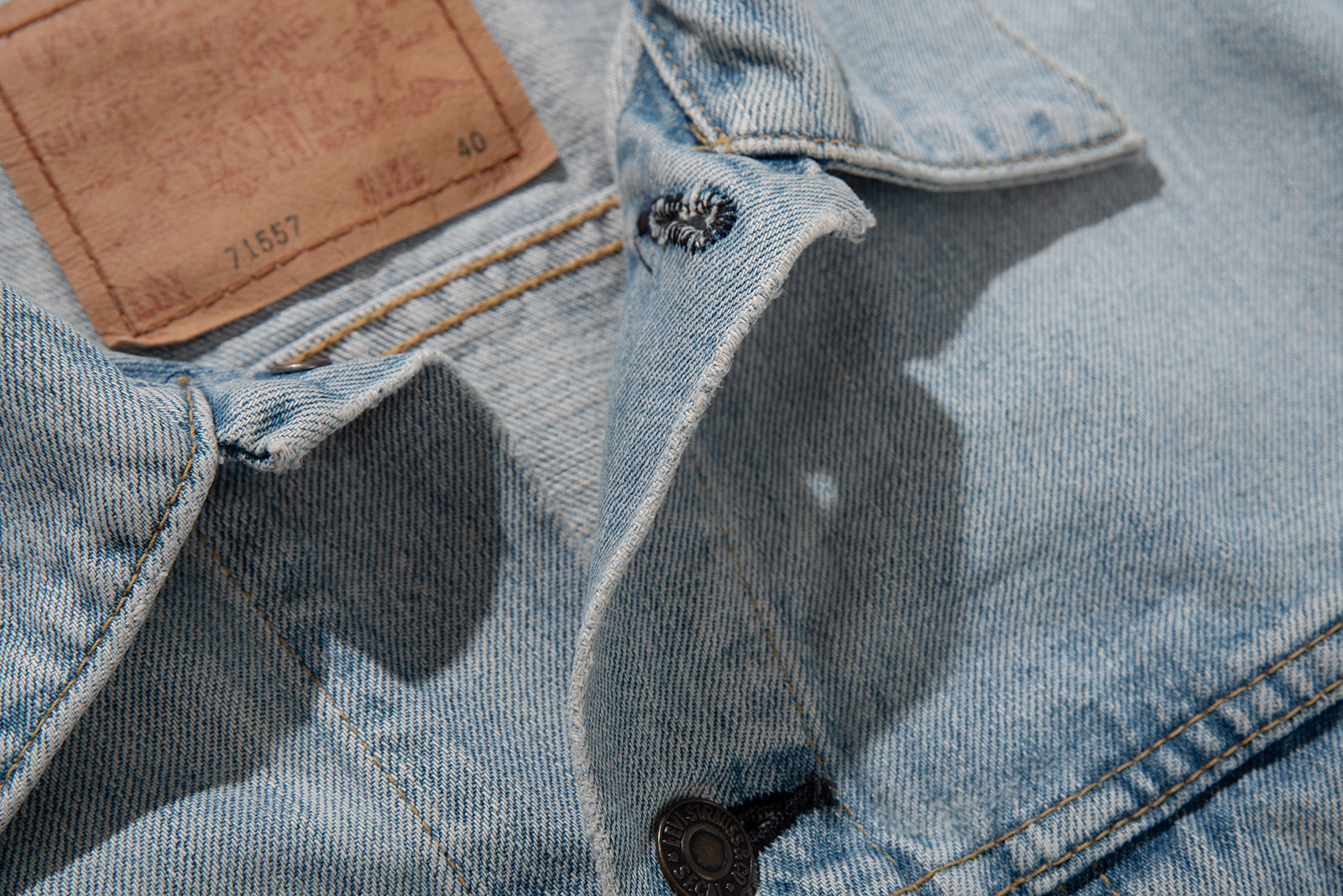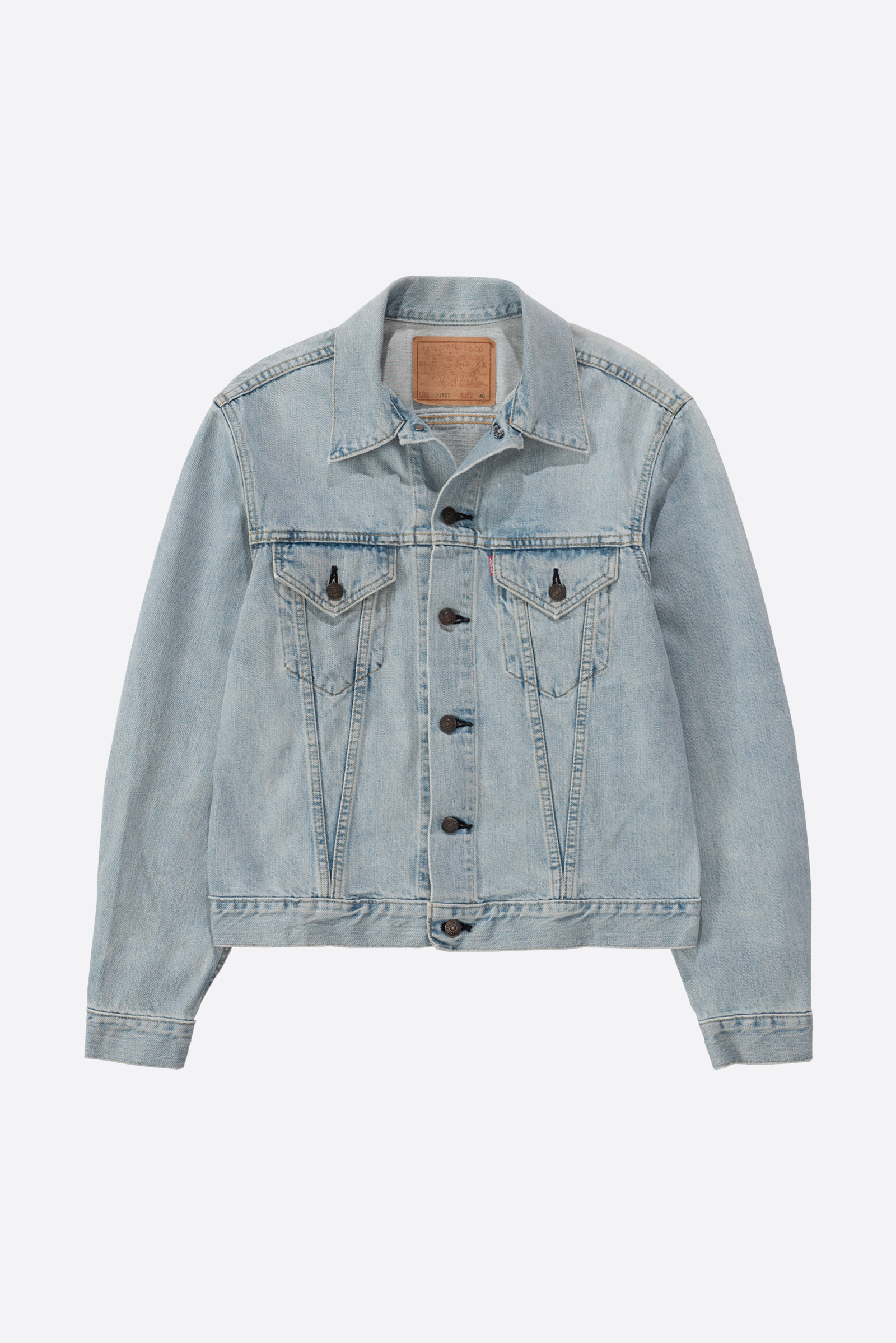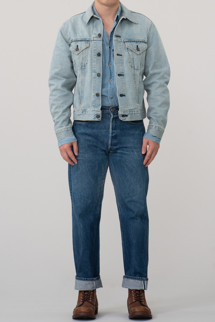 일본에서 론칭 된 재팬 LVC의 초기형 71557 데님 트러커입니다. 시원한 연청 톤으로 제작되었으며 표기 40사이즈로 국내 100-105 정도의 사이즈 감입니다. 실측 비교 후 구매부탁드립니다.