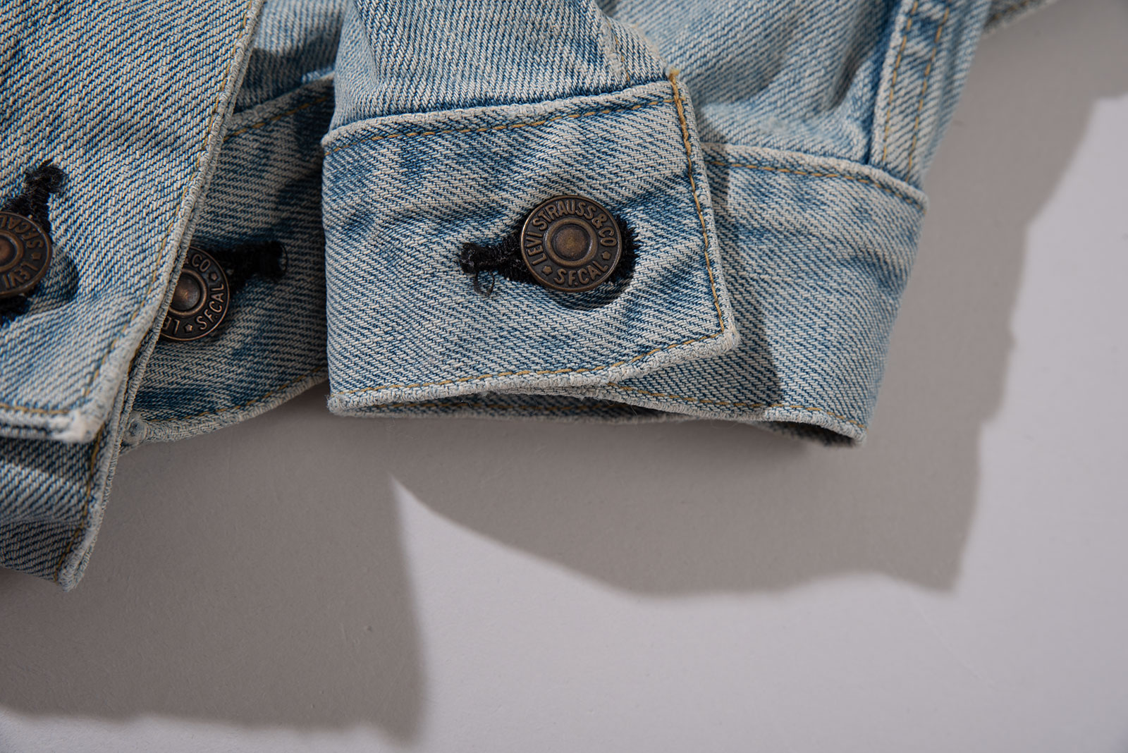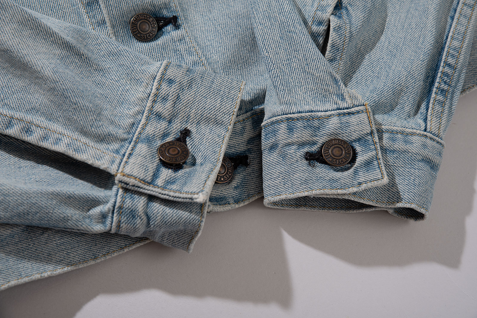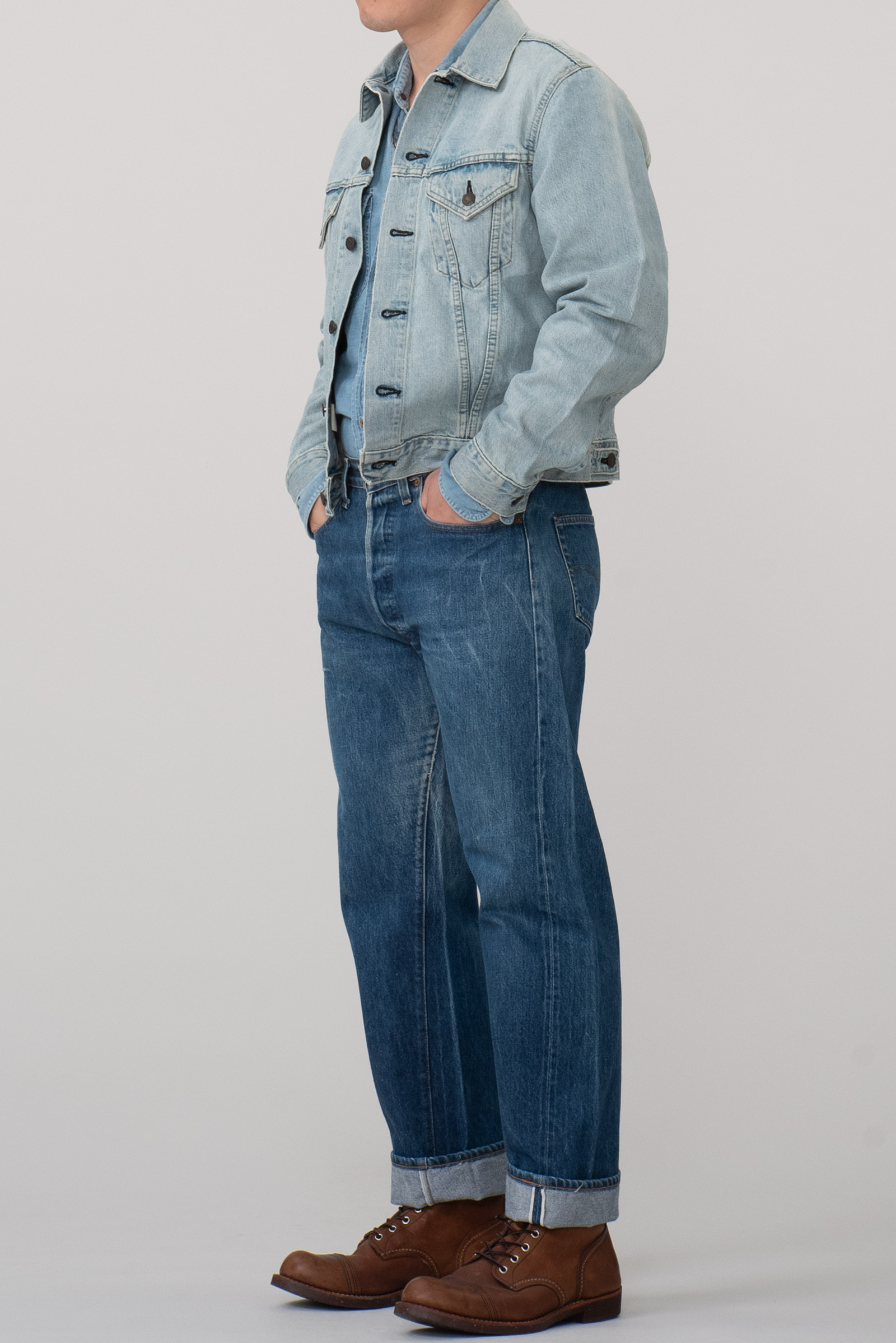 일본에서 론칭 된 재팬 LVC의 초기형 71557 데님 트러커입니다. 시원한 연청 톤으로 제작되었으며 표기 40사이즈로 국내 100-105 정도의 사이즈 감입니다. 실측 비교 후 구매부탁드립니다.