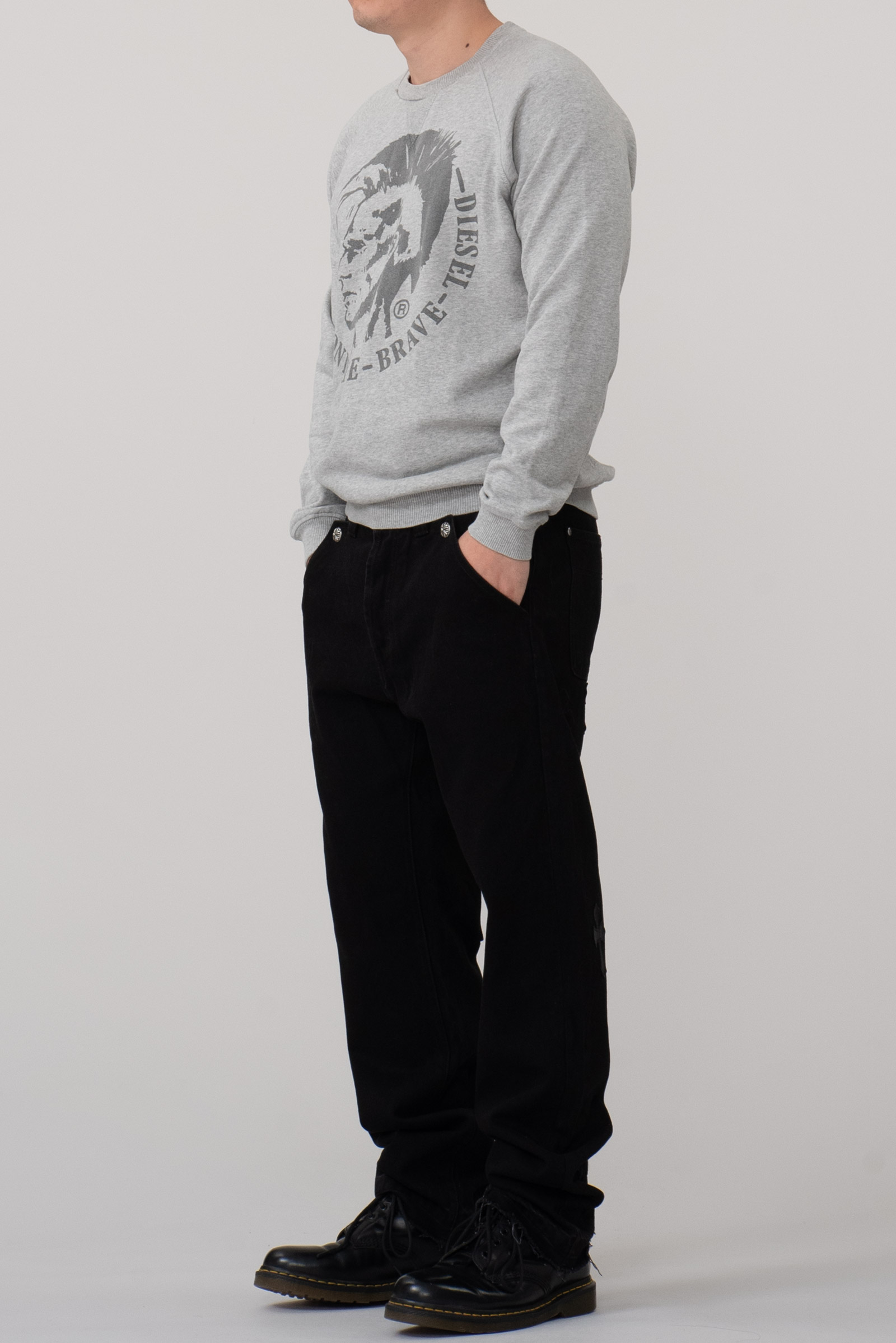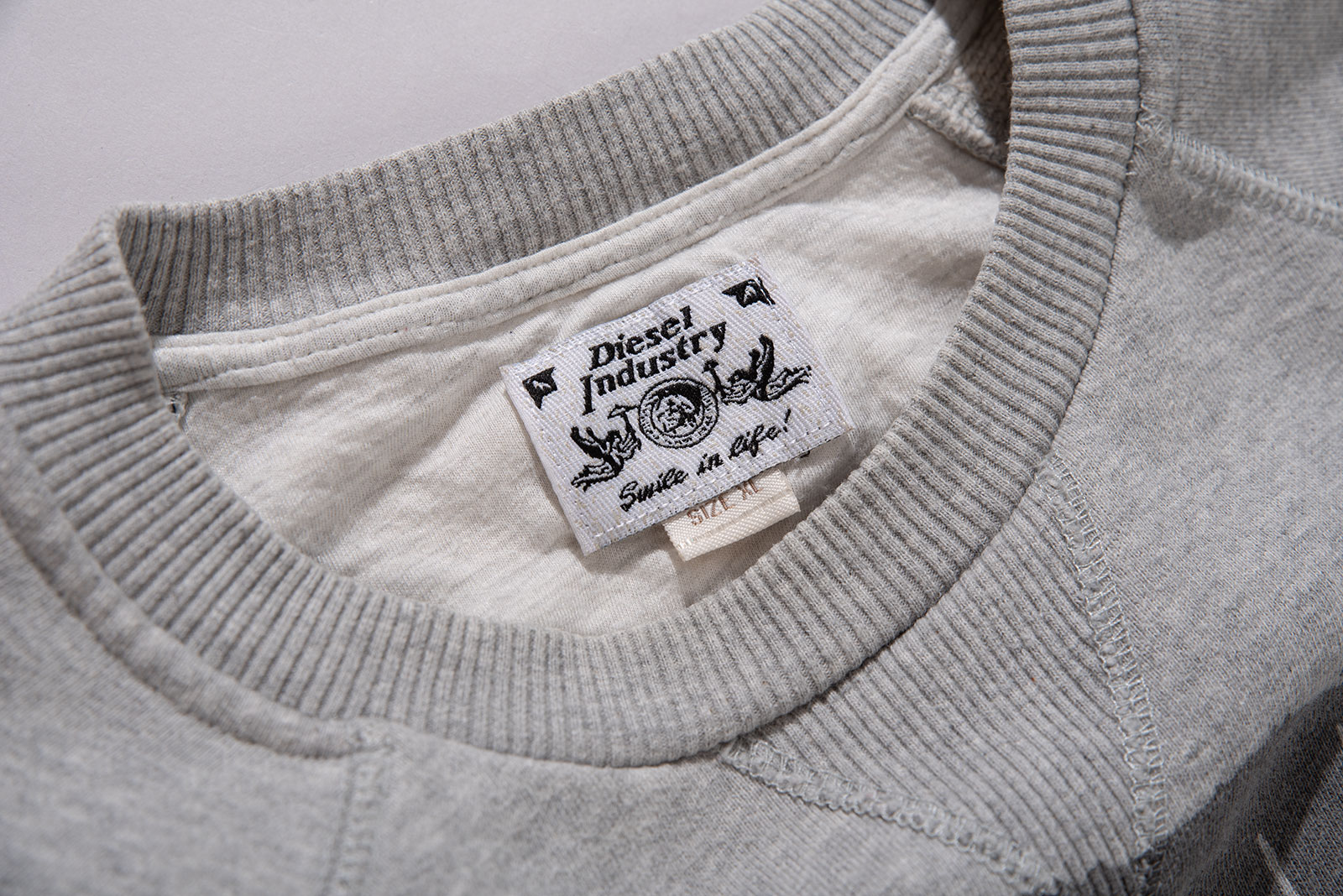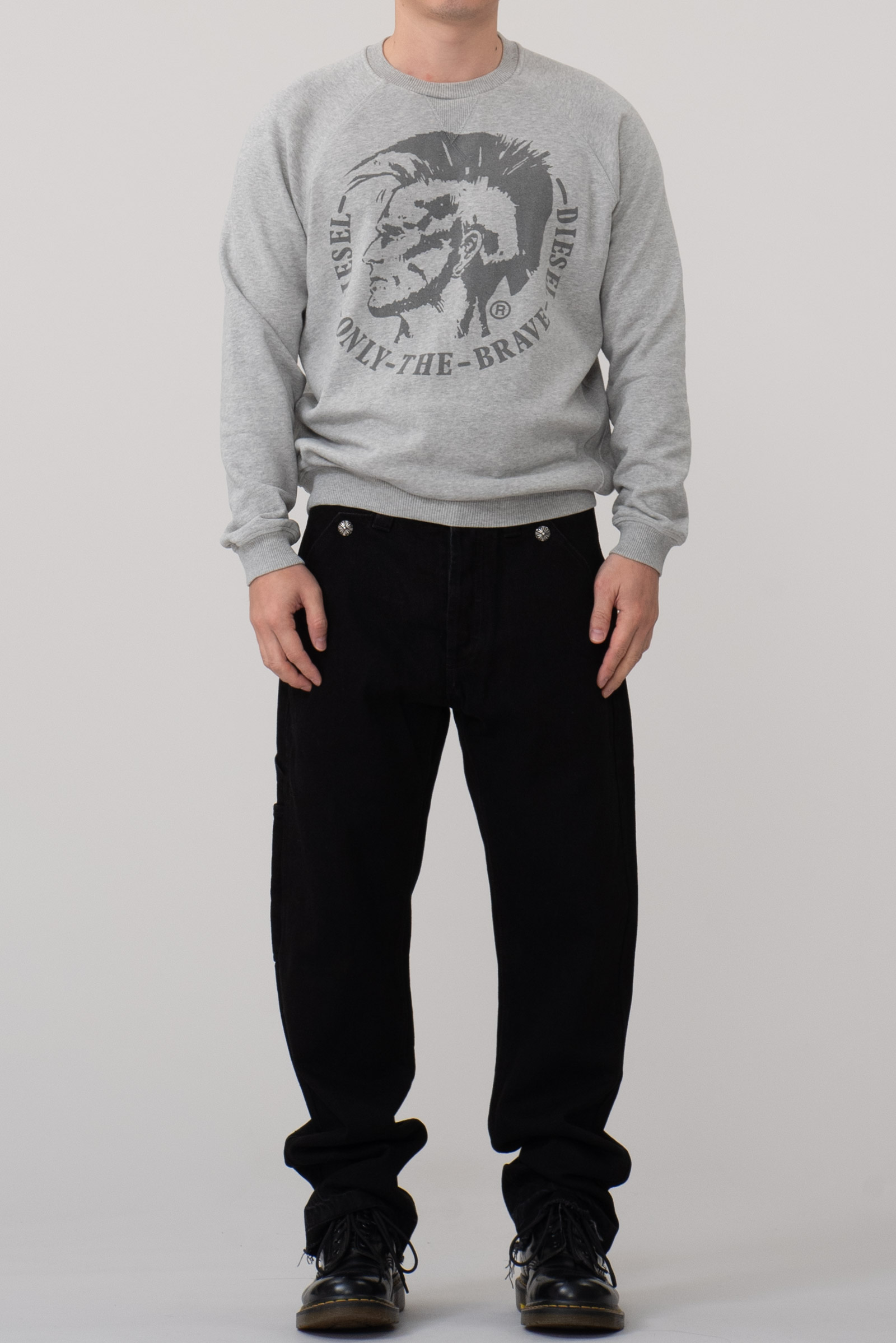 디젤의 맨투맨입니다. 디젤 로고가 큼지막한 디자인에 무난한 컬러링이죠. 전반적으로 사용감이 있고 오염이 있습니다. 감안하고 구매부탁드립니다.