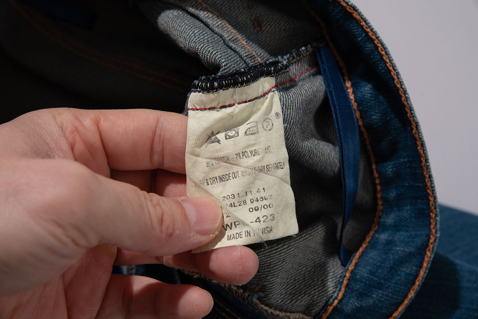 2001 년에 제작 된 오리지널 리바이스 레드의 테이스티 테이스트스 데님 팬츠입니다. 이게 면 100% 소재이면 입기가 아주...거시기할텐데, 폴리2%가 함유되어 있어 신축성이 있습니다. 그래서 착용하고 활동하는데는 크게 문제는 없을 것 같습니다만..아무튼 사진으로 보시듯 아주 스키니한 팬츠입니다. 모델에게 맞지 않아 피팅을 하지 못했습니다. 허리와 밑위, 허벅지를 꼭! 비교하시거 구매부탁드립니다. 새상품에 가까운 컨디션으로 입고 되었습니다. 리바이스의 전성기를 이끌던 하이엔드 시리즈라 귀한 피스 중 하나입니다.